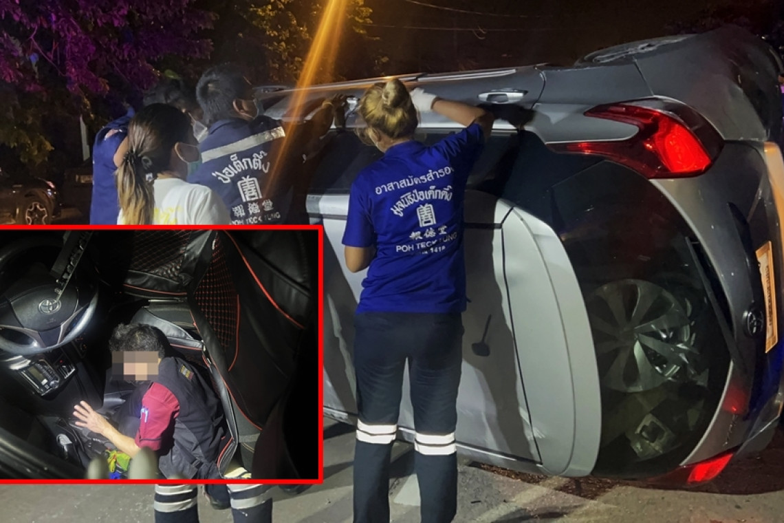 ที่เกิดเหตุเข้าจากถนนรามอินทรามาประมาณ 700 เมตร พบรถเก๋งยี่ห้อโตโยต้า รุ่นยา List สีบอล ทะเบียนกรุงเทพมหานคร พุ่งชนท้ายรถเก๋งที่พลิกตะแคงขวางทางอยู่ก่อนหน้านี้ได้ไปพุ่งชนรถเก๋งชาวบ้านเสียหายไปทั้งสองคันที่จอดอยู่ริมถนนคันกู้ภัยป่อเต็กตึ๊งจึงเข้าไปตรวจสอบรถเก๋งคันที่พลิกตะแคงสภาพรถด้านหน้าพังยับเยิน รอบตัวรถเป็นรอยขูดกับพื้นถนนหลังคายุบกระจกฝั่งคนขับแตก และพบภายในรถมีเพียงคนขับคนเดียว คล้ายคนเมา พูดจาไม่รู้เรื่องแต่งกายชุดพนักงานสถานบันเทิงแห่งหนึ่งย่านเลียบด่วนรามอินทรา จึงช่วยนำออกจากตัวรถมีบาดแผลที่บริเวณปากมีเลือดไหล ได้ปฐมพยาบาลเบื้องต้นรอเจ้าหน้าทีตำรวจ ทราบชื่อนายวง (นามสมมุติ) อายุ 38 ปี