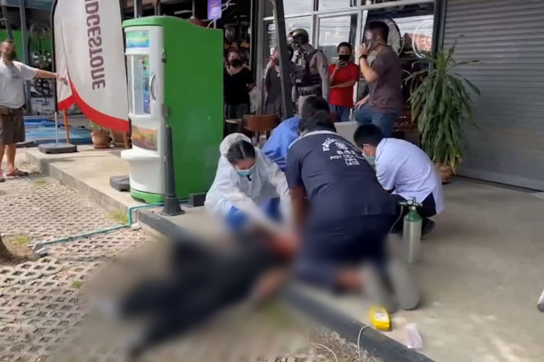 โดยในที่เกิดเหตุบริเวณหน้าร้าน พบร่างนายปิยะพล (สงวนนามสกุล) อายุ 54 ปี ชาวลพบุรี ซึ่งเป็นพนักงานของร้านเครื่องใช้ไฟฟ้า นอนหมดสติ ไม่มีชีพจร เจ้าหน้าที่ทำการช่วยเหลือปั้มหัวใจอยู่นานเกือบครึ่งชั่วโมง แต่ไม่เป็นผล สภาพมีแผลถูกแทงด้วยของมีคมใต้รักแร้ และสีข้างด้านซ้าย ใกล้กันพบเจ้าหน้าที่ตำรวจกำลังคุมตัว นายณภัทร (สงวนนามสกุล) อายุ 47 ปี ชาวนครราชสีมา พนักงานร้านเครื่องใช้ไฟฟ้า ซึ่งเป็นผู้ก่อเหตุ พร้อมของกลาง อาวุธมีดปลายแหลม ยาวประมาณ 30 เซนติเมตร และไขขวงปลายแหลม ภาพจากกล้องวงจรปิด พบว่าผู้ก่อเหตุ เดินคุยโทรศัพท์ไปมาบริเวณหน้าร้านในมือซ้ายถือมีดอยู่ ก่อนวางโทรศัพท์แล้วเดินไปคุยกับผู้ตายที่ข้างร้าน ก่อนเข้าไปใช้อาวุธในมือแทงกันอยู่พักใหญ่โดยไม่มีใครกล้าเข้าไปห้าม ก่อนผู้ตายล้มลงไปนอนกับพื้น ส่วนผู้ก่อเหตุถูกเจ้าหน้าที่ตำรวจควบคุมตัว