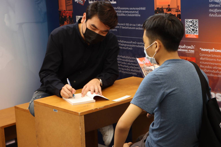 ในงานสัปดาห์หนังสือแห่งชาติ ครั้งที่ 50 และสัปดาห์หนังสือนานาชาติ ครั้งที่ 20 บรรยากาศที่บูธ A14 ‘ คณะก้าวหน้า ’ มีนักศึกษาเเละประชาชนที่สนใจเเละผู้สนับสนุนติดตามในผลงานของคณะก้าวหน้า พรรคก้าวไกล เดินทางมาอย่างต่อเนื่อง โดยเมื่อเวลา 17.15 น. "ปิยบุตร แสงกนกกุล" แกนนำคณะก้าวหน้า เดินทางมาถึงบูธคณะก้าวหน้า เพื่อแจกลายเซ็นให้สำหรับนักศึกษา ประชาชน ที่เดินทางเข้ามาซื้อหนังสือ “จนกว่าอำนาจสูงสุดเป็นของประชาชน”