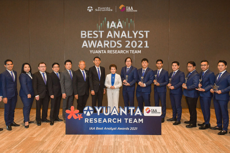 คุณบุญพร บริบูรณ์ส่งศิลป์ ประธานเจ้าหน้าที่บริหาร และคณะผู้บริหาร พร้อมด้วยทีมวิเคราะห์หลักทรัพย์บล.หยวนต้า (ประเทศไทย) จำกัด รับรางวัลนักวิเคราะห์ยอดเยี่ยมแห่งปี 2021 จาก สมาคมนักวิเคราะห์การลงทุน (IAA) ทั้งนี้ ทีมวิเคราะห์หลักทรัพย์ บริษัทหลักทรัพย์หยวนต้า สร้างประวัติศาสตร์โชว์ผลงานด้านการวิเคราะห์หลักทรัพย์เป็นที่โดดเด่น ด้วยการคว้ารางวัล ทีมวิเคราะห์และนักวิเคราะห์ยอดเยี่ยมประจำปี 2021 จำนวนรวม 15 รางวัล จาก 15 หมวดการแข่งขัน โดยได้รับรางวัลยอดเยี่ยมประจำปี จำนวน 7รางวัล และอีก 8 รางวัล Outstanding ซึ่งเป็นจำนวนรางวัลที่มากที่สุดในวงการอุตสาหกรรมธุรกิจบริษัทหลักทรัพย์ในประเทศไทย คุณบุญพร บริบูรณ์ส่งศิลป์ ประธานเจ้าหน้าที่บริหาร บล.หยวนต้า กล่าวว่า "ขอขอบคุณลูกค้า และนักลงทุน ที่เชื่อมั่นในศักยภาพและสนับสนุนทีมนักวิเคราะห์ของเรามาโดยตลอด โดยภายใต้การนำทีมของคุณภาดล วรรณรัตน์ ผู้ช่วยกรรมการผู้จัดการ หัวหน้าฝ่ายวิเคราะห์การลงทุน บล.หยวนต้า ที่มีความมุ่งมั่นตั้งใจพัฒนาและผลิตผลงานทางด้านบทวิเคราะห์ออกมาอย่างมีคุณภาพเพื่อนักลงทุน จนเป็นที่ชื่นชอบแก่นักลงทุน รวมไปถึงนักวิเคราะห์ทุกคนที่ทุ่มเทแรงกายในการทำงาน จนได้รับรางวัลอันทรงเกียรติครั้งนี้ ทั้งนี้บริษัทฯ ยังคงแสดงจุดยืนในเรื่องของการยกระดับมาตรฐานการลงทุนให้กับอุตสาหกรรมหลักทรัพย์มาโดยตลอด อาทิเช่น การให้ความสำคัญกับบทวิเคราะห์ ESG ในปีที่ผ่านมา ซึ่งเป็นธีมการลงทุนในระยะยาวที่เกิดขึ้นทั่วโลก รวมทั้งการออกบทวิเคราะห์ Digital Asset โดยในปีนี้เพื่อให้ความรู้กับนักลงทุนถึงโอกาสที่จะเกิดขึ้นใน Asset Class ใหม่ บริษัทฯ ได้มีการวางแผนและแนวทางการพัฒนาด้านการส่งเสริมความรู้ด้านการลงทุนให้กับนักลงทุนอย่างสม่ำเสมอผ่านสื่อสังคมออนไลน์ เพื่อให้สอดคล้องกับการใช้วิถีชีวิตรูปแบบใหม่ (New Normal) โดยการให้ความรู้การลงทุนผ่านช่องทางการสื่อสารที่เข้าถึงนักลงทุน เช่น การจัดรายการ Yuanta WoW Channel รายการนำเสนอข้อมูลและความรู้การลงทุนแบบครบวงจรเพื่อการลงทุนในทุก asset class เป็นการจัดรายการสดกว่า 10 รายการตลอด 7 วัน ที่มีผู้ติดตามกว่า 85,000 คน และช่องยูทูปของหยวนต้าที่กำลังได้รับความนิยมมากในขณะนี้ ทั้งหมดนี้เป็นผลงานส่วนหนึ่งที่ทำให้ทีมวิเคราะห์ของหยวนต้า เป็นที่รู้จักแก่นักลงทุนนักลงทุน จนเกิดความเชื่อมั่นและสนับสนุนเราจนได้รับรางวัลเกียรติยศที่ทรงคุณค่า ในครั้งนี้ ความสำเร็จที่เราได้รับและยิ่งเพิ่มพูนมากยิ่งขึ้นนั้นสะท้อนให้เห็นถึงการพัฒนาที่ไม่หยุดยั้ง เพื