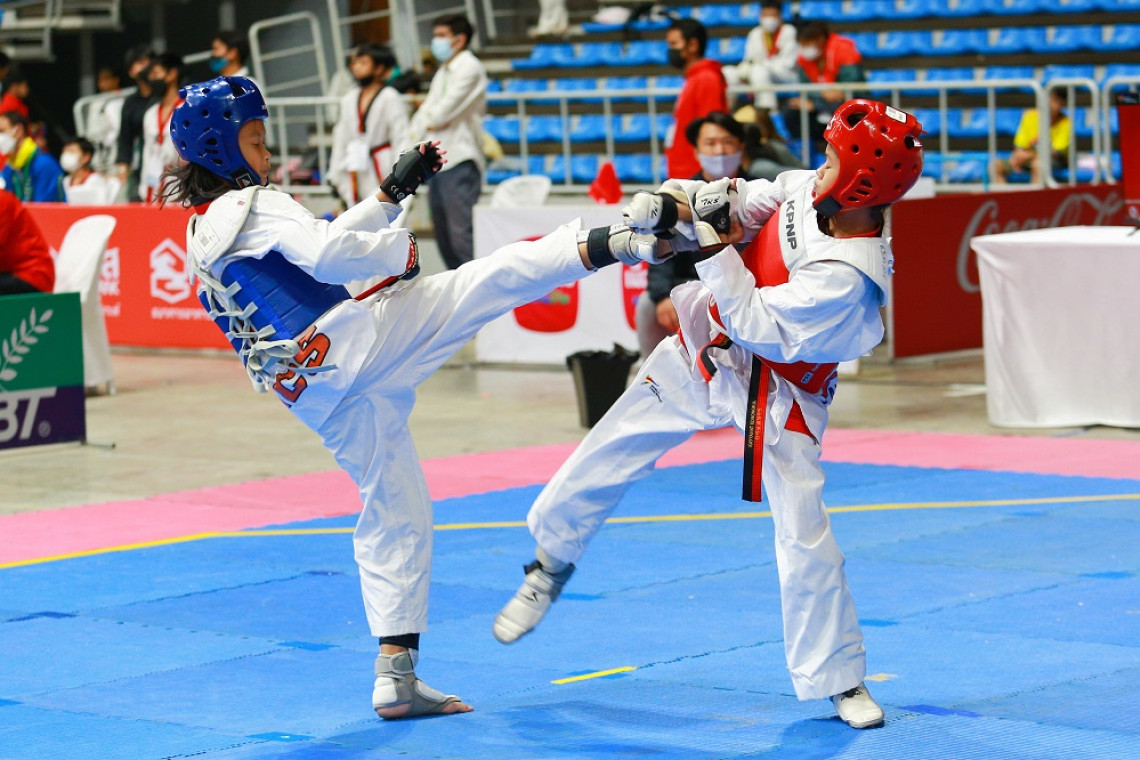 การแข่งขันจีเอช แบงก์ เทควันโดชิงชนะเลิศแห่งประเทศไทย ประเภทต่อสู้ ประจำปี 2565 ที่อาคารกีฬาในร่ม ศูนย์กีฬาแห่งชาติภาคตะวันออก จ.ชลบุรี เมื่อวันที่ 3 เมษายน เป็นการแข่งขันวันที่ 2 ซึ่งผลการประลองในรอบชิงชนะเลิศ รุ่นที่น่าสนใจ รุ่น 12-14 ปีหญิง น้ำหนักไม่เกิน 33 กก. ระหว่าง เพชราภรณ์ พัฒน์นันท์หิรัญ จาก เคซีเอส อคาเดมี ลงเจอกับ กัญญาณัฐ โคหนองบัว จาก ทวีศิลป์ เทควันโด โดยเกมเตะของ เพชราภรณ์ อาศัยดักเตะจังหวะสองได้ดีกว่า เป็นฝ่ายเอาชนะไป 10-1 คะแนน คว้าเหรียญทองไปครอง ส่วนรอบชิงชนะเลิศรุ่น 11-12 ปีหญิง น้ำหนักไม่เกิน 42 กก. เบญญาภา บิณฑสูตร จากไทเกอร์ไทย แต้จิ๋ว ชนะ ปทิตตา วัชรินทรานนท์ จากเดอะมาสเตอร์ เทควันโด หนองคาย ไปได้ 9-1 คะแนน "เลขาฯบิ๊ก" นายธนฑิตย์ รักตะบุตร เลขาธิการสมาคมกีฬาเทควันโดแห่งประเทศไทย กล่าวว่า จากการแข่งขันที่ผ่านมา 2 วัน มีการตรวจเอทีเคนักกีฬาและโค้ชก่อนเข้าสนามแข่งขันไปแล้วประมาณ 1,200 คน เกิน 70 เปอร์เซ็นต์จากผู้ร่วมแข่งขันทั้งหมดแล้ว พบว่ามีผู้ติดเชื้อเพียง 7 คนเท่านั้น ส่วนอีก 5 คนติดเชื้อก่อนจะเดินทางมาแข่งขัน นับว่ามีผู้ติดเชื้อน้อยมาก ไม่ถึง 1 เปอร์เซ็นต์ ทำให้เชื่อมั่นว่ามาตรการที่สมาคมกีฬาเทควันโดฯ วางไว้อย่างเคร่งครัดในการป้องกันการติดเชื้อโควิด-19 ได้ผลดี และจะใช้ต่อเนื่องไปในทัวร์นาเมนต์อื่นๆ ที่จะแข่งขันหลังจากนี้ "เลขาบิ๊ก" กล่าวว่า หลังจากที่ศึกชิงแชมป์ประเทศไทยห่างหายจากการแข่งขันไป 2 ปี นักกีฬาในประเทศไม่มีทัวร์นาเมนต์รายการใหญ่ให้แข่งขัน ทำให้นักกีฬามีความมุ่งมั่นสูงมาก อยากจะมาแสดงศักยภาพให้ได้เห็นกัน ซึ่งเป็นเรื่องที่ดีทั้งตัวนักกีฬาเองและสมาคมที่จะต้องเฟ้นหาจอมเตะหน้าใหม่เสริมทีมชาติต่อไปในอนาคต