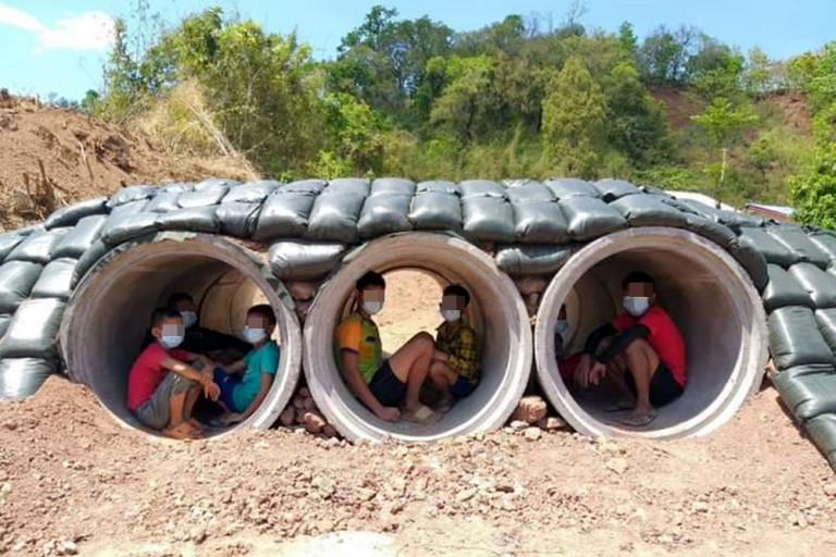 วันที่ 3 เม.ย.65 จากการที่มีการสู้รบอย่างต่อเนื่อง ตลอดแนวชายแดนไทย-เมียนมา ระหว่างทหารรัฐบาลเมียนมากับกองกำลังชนกลุ่มน้อยกะเหรี่ยงอิสระ KNU ทำให้หน่วยเฉพาะกิจกรมทหารพรานที่ 35 (ฉก.ทพ 35) โดย ร้อย.ทพ.3508 ร่วมกับฝ่ายปกครอง และท้องถิ่นในพื้นที่ ชายแดนไทย-เมียนมา อ.ท่าสองยาง จ.ตาก ได้ดำเนินการปรับปรุงสร้างหลุมหลบภัยเพิ่มเติม ขนาด ความกว้าง 3 ม. ยาว 15 ม. ความจุ 30 คน บริเวณพื้นที่ด้านข้าง โรงพยาบาลส่งเสริมสุขภาพตำบล (รพ.สต.) บ้านท่าสองยาง พิกัด LV 857420 บ้านสวนอ้อย หมู่ 9 ต.ท่าสองยาง อ.ท่าสองยาง เพื่อรองรับสถานการณ์กรณีหากเกิดการสู้รบตามแนวชายแดนในประเทศเพื่อนบ้าน ด้านตรงข้ามพื้นที่รับผิดชอบของหน่วย ผลการปฏิบัติได้ดำเนินการแล้วเสร็จเป็นที่เรียบร้อย สามารถเป็นที่หลบภัยของประชาชน มีความมั่นคงแข็งแรง ปลอดภัย หากมีเหตุการณ์สู้รบตามแนวชายแดนในพื้นที่ สร้างความมั่นใจให้กับประชาชนคนไทย