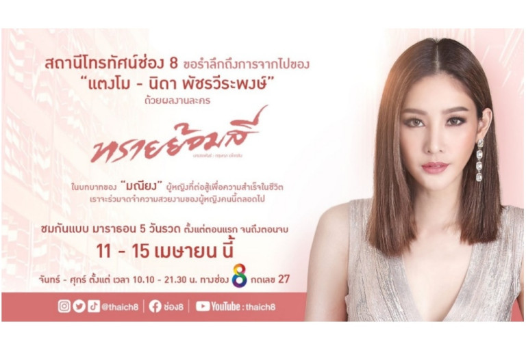 ทำเอาแฟนละครชาวไทยเศร้ากันไปทั้งประเทศ เมื่อต้องสูญเสียดาวประดับฟ้าอีกดวงอย่าง นางเอกสาวผู้ล่วงหลับ “แตงโม-นิดา พัชรวีระพงษ์” ที่เสียชีวิตจากเหตุการณ์พลัดตกเรือสปีดโบ๊ต ขณะล่องเรือกลางแม่น้ำเจ้าพระยา ทำให้วงการบันเทิงไทย สูญเสียนักแสดงที่มากความสามารถไปอีกคน เส้นทางในวงการบันเทิง สาวแตงโมทำมาแล้วแทบทุกรูปแบบ และแต่ละอย่างก็ล้วนเป็นที่ยอมรับถึงความสามารถที่หลากหลาย รวมไปถึงบทบาทการเป็นนักแสดง ซึ่งนางเอกคนนี้ ผ่านผลงานละครมาแล้วมากมายหลายเรื่อง ตลอดระยะเวลา 20 ปี ซึ่งหนึ่งในนั้น มีผลงานสุดมาสเตอร์พีช ที่สร้างชื่อนั่นคือ ละครเรื่อง “ทรายย้อมสี” ของ ทางสถานีโทรทัศน์ช่อง 8
