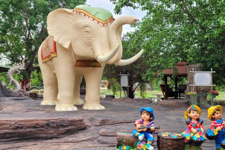 ซึ่งภายในบริเวณพื้นที่วัดป่าคำหัวช้างนี้ นอกจาก“ศาลเจ้าปู่คำหัวช้าง” แล้ว สถานที่แห่งนี้ ในอดีตยังเป็นเส้นทางเดินทัพของเหล่านักรบ ครานั้น ช้างศึกของน้องสาวย่าโมแห่งเมืองโคราชได้พลัดตกลงไปตายในหนองน้ำท้ายวัด ต่อมาได้มีการพบโครงกระดูก จึงปั้นรูปช้างที่มีความสูง 5 เมตร พร้อมบรรจุวัตถุมงคลร้อยแปดไว้ภายใน และตั้งชื่อว่า “พลายแก้วกระดิ่งทอง” ซึ่งพื้นที่บริเวณนี้ นับเป็นจุด check in ที่ได้รับความนิยมจากประชาชนที่เข้ามากราบไหว้พ่อปู่คำหัวช้าง และเป็นพื้นที่สำหรับพักผ่อนที่ให้ความสงบ ร่มรื่น อีกทั้งยังเป็นพื้นที่สำหรับครอบครัว เพราะมีเครื่องเล่นสำหรับเด็ก และเครื่องออกกำลังกายสำหรับผู้ใหญ่ พร้อมเครื่องดื่มเย็นๆ ที่ทางวัดฯ จัดไว้ให้บริการ พร้อมมีไวไฟฟรีสำหรับทุกท่าน