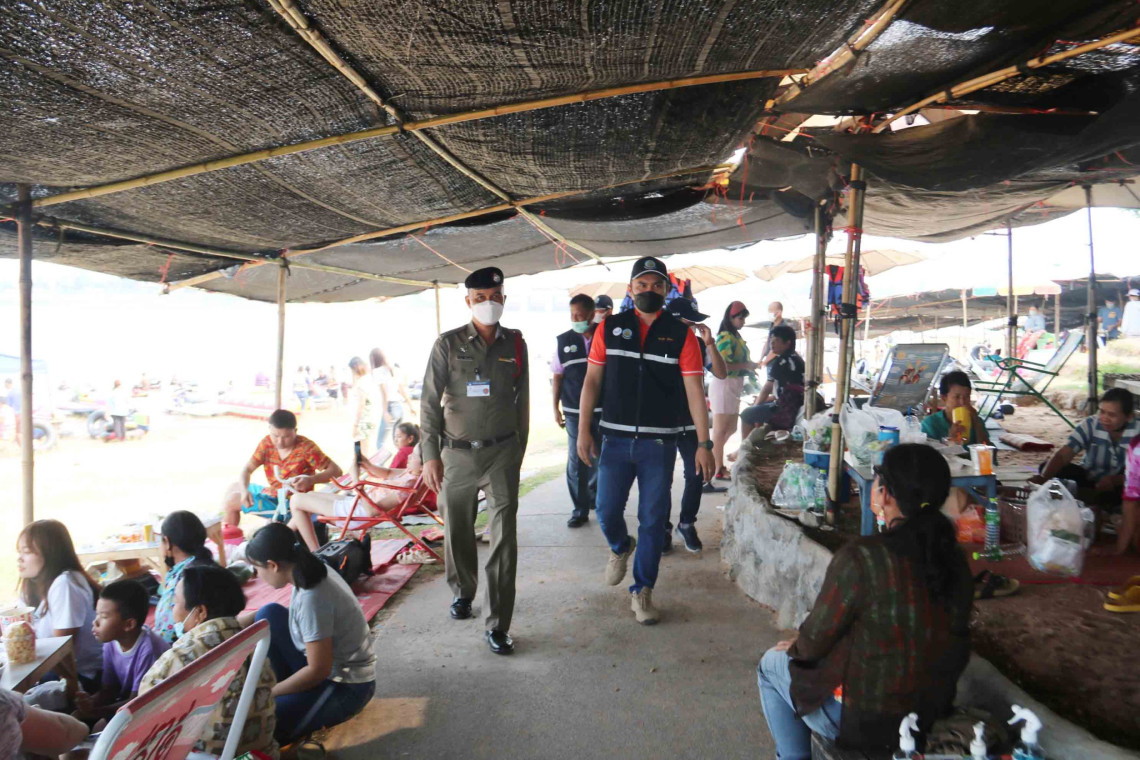 บรรยากาศสงกรานต์วันแรกที่จังหวัดกาฬสินธุ์คึกคัก โดยเฉพาะที่หาดดอกเกดหรือทะเลอีสาน เขื่อนลำปาว แหล่งท่องเที่ยวอันดับหนึ่งของจังหวัด พบว่ามีประชาชน นักท่องเที่ยว ลงเล่นน้ำคลายร้อนรับเทศกาลสงกรานต์เป็นจำนวนมาก ขณะที่ผู้อำนวยการส่งน้ำและบำรุงรักษาลำปาว พร้อมกำลังเจ้าหน้าที่ของเขื่อนลำปาว ร่วมกับฝ่ายสาธารณสุข ตำรวจและฝ่ายปกครอง เข้มมาตรการป้องกันโควิด-19 และรักษาความปลอดภัยอย่างใกล้ชิด ยืนยันปริมาณน้ำเพียงพอใช้ตลอดฤดูแล้ง เมื่อวันที่ 13 เมษายน 2565 ผู้สื่อข่าวรายงานว่า จากการติดตามบรรยากาศเทศกาลสงกรานต์ในวันแรก ที่จังหวัดกาฬสินธุ์ พบว่าเริ่มมีความคึกคักเป็นอย่างมาก โดยเฉพาะที่บริเวณหาดดอกเกดเขื่อนลำปาว ที่ได้ชื่อว่าเป็นทะเลอีสาน และเป็นแหล่งท่องเที่ยวอันดับหนึ่งของ จ.กาฬสินธุ์ มีประชาชนและนักท่องเที่ยวเดินทางมาเล่นน้ำตั้งแต่ช่วงเช้า เพื่อหลีกเลี่ยงการจราจรติดขัด และเล่นน้ำคลายร้อน เนื่องจากสภาพอากาศกำลังร้อนจัด และในการละเล่นสงกรานต์ปีนี้ ทางจังหวัดประกาศห้ามไม่ให้มีการสาดน้ำ เพื่อป้องกันการแพร่ระบาดของโรคติดเชื้อโควิด-19 จึงได้มาผ่อนคลายความร้อนโดยลงเล่นน้ำที่บริเวณหาดกอดเกดดังกล่าว ซึ่งมีแนวเขตความยาวระยะปลอดภัยให้ลงเล่นน้ำกว่า 200 เมตร ทั้งนี้นายสำรวย อินพิทักษ์ ผู้อำนวยการโครงการส่งน้ำและบำรุงรักษาลำปาว หรือเขื่อนลำปาว พร้อมด้วยนายณรงค์ศักดิ์ ปิณฑดิษฐ หัวหน้าฝ่ายจัดสรรน้ำและปรับปรุงระบบชลประทาน โครงการส่งน้ำและบำรุงรักษาลำปาว ร่วมกับเจ้าหน้าที่รักษาความปลอดภัยประจำเขื่อนลำปาว ฝ่ายสาธารณสุข และฝ่ายปกครอง ได้เข้าติดตามบรรยากาศและดูแลความเรียบร้อย ภายในบริเวณหาดดอกเกด หลังจากมีประชาชน นักท่องเที่ยว เดินทางเข้ามาใช้บริการเป็นจำนวนมาก นอกจากนี้ยังได้กำชับผู้ประกอบการร้านค้า ร้านขายอาหาร อุปกรณ์เล่นน้ำ ทั้งในส่วนของการแสดงราคาสินค้าให้ชัดเจน ราคาบริการที่เป็นธรรม ไม่เอาเปรียบผู้บริโภค เข้มมาตรการป้องกันโควิด-19 และความปลอดภัยในขณะเล่นน้ำด้วย นายสำรวย อินพิทักษ์ ผู้อำนวยการโครงการส่งน้ำและบำรุงรักษาลำปาว กล่าวว่า บรรยากาศการเล่นน้ำที่บริเวณหาดดอกเกด ในวันเริ่มต้นสงกรานต์ปีนี้มีความคึกคักเป็นอย่างมาก หากเทียบกับปีก่อนๆที่ไม่มีสถานการณ์โควิด จะเห็นว่ามีจำนวนมากถึง 70% เลยทีเดียว ทั้งนี้ เพื่อความปลอดภัยในทุกๆด้าน ได้มีการตั้งจุดคัดกรอง วัดอุณหภูมิ กรอกประวัติ ของประชาชน และนักท่องเที่ยวทุกคน นอกจากนี้ยังได้ร่วมกับภาคส่วนที่เกี่ยวข้อง จัดเจ้า