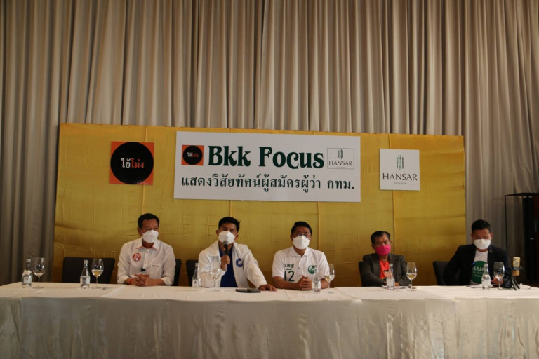 วันที่ 11 เม.ย.65 ที่ผ่านมา 5 ผู้สมัครในตำแหน่งผู้ว่าราชการกรุงเทพมหานคร (ผู้ว่าฯ กทม.) ร่วมเสวนา BKK Focus จัดโดยเพจ ‘ไอ้โม่ง’ เพื่อแสดงวิสัยทัศน์ต่อการบริหารงานกรุงเทพมหานคร ณ โรงแรมหรรษา ราชดำริ เขตปทุมวัน