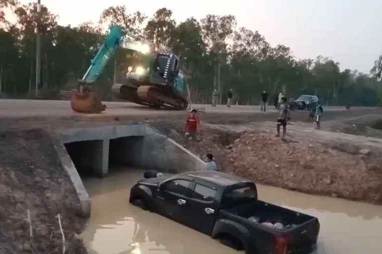 วันที่ 14 เม.ย.65 หน่วยกู้ภัยสุรินทร์ ประจำจุด อบต.สำโรง ตำบลสำโรง อำเภอเมือง จังหวัดสุรินทร์ ได้รับแจ้งว่า มีรถกระบะปิ๊กอัพยางระเบิด แฉลบ ตกลงไปในลำคลองส่งน้ำที่มีน้ำขังสูง จุดเกิดเหตุระหว่างเส้นทางบ้านตราด กับหมู่บ้านทับกระบือ เกิดเหตุก่อนถึงหมู่บ้านทับกระบือ ตำบลสำโรง อ.เมืองสุรินทร์ ประมาณ 2 กิโลเมตร