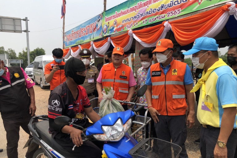 คณะกรรมการศูนย์ปฏิบัติการป้องกันและลดอุบัติเหตุทางถนนช่วงเทศกาลสงกรานต์ 2565 และประธานกรรมการสันนิบาตสหกรณ์จังหวัดกาฬสินธุ์ เดินสายติดตามความเรียบร้อยตามจุดบริการประชาชนแบบบูรณาการ ตามโครงการป้องกันและลดอุบัติเหตุทางถนนช่วงเทศกาลสงกรานต์ พร้อมกำชับคุมเข้มความปลอดภัยในช่วงเดินทางกลับหลังเทศกาลสงกรานต์