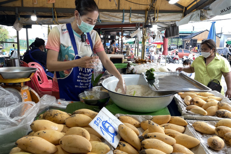 ร้านข้าวเหนียวมะม่วง พ.ไพลิน หัวหิน สุดอึ้ง กระแสข้าวเหนียวมะม่วงฟีเวอร์ แห่กินตามแร็บเตอร์สาวคนดัง แรงมากไม่ถึง 1 ชั่วโมง ข้าวเหนียวมะม่วงหมดเกลี้ยง 1 กะละมัง 30 กิโลกรัม ยอมรับไม่ได้เตรียมตัวก่อน ทำให้ของไม่พอขาย