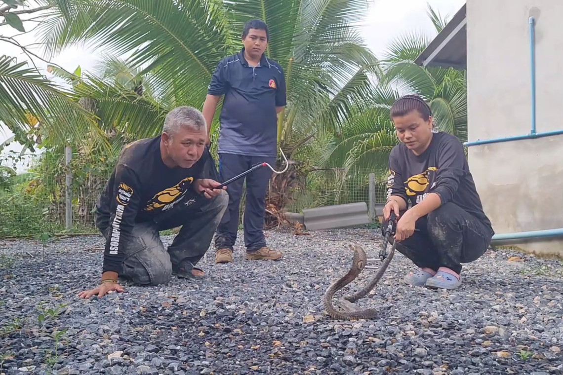 เหตุการณ์แม่งูเห่าเข้าไปทำรังใต้ถุนบ้านวางไข่จำนวนมากเกือบกลายเป็นกองทัพงูเห่า รายนี้เมื่อวันที่ 19 เมษายน 2565 ผู้สื่อข่าวรายงานว่าที่บ้านในสวนมะพร้าว ไม่มีเลขที่ บ้านบางสะพาน หมู่ที่ 7 ตำบลบางจาก อำเภอเมืองนครศรีธรรมราช ทีมอสรพิษวิทยาภาคใต้ และเจ้าหน้าที่มูลนิธิสยามร่วมใจปู่อินทร์ ได้เข้าให้การช่วยเหลือเจ้าของบ้านด้วยการเข้ารื้อใต้ถุนบ้านเพื่อเก็บไข่งูเห่า และจับแม่งู ด้วยเกรงว่าจะสร้างอันตรายให้กับเจ้าของบ้านรวมทั้งเด็กๆในบ้านเนื่องจากพบไข่งูจำนวนมาก รวมทั้งแม่งูเห่าอีกจำนวนหนึ่ง โดยเจ้าของบ้านรายนี้คือนายกมล สุทธิกุลานนท์ อายุ 39 ปี เจ้าของบ้านระบุว่าเมื่อ 3 วันที่ผ่านมาภถรรยาได้ตามหาแมวที่หายไปจากบ้านและตามเข้าไปที่ใต้ถุนบ้าน ซึ่งมีโพรงใต้พื้นบ้านที่ยกสูง โดยไม่ได้คิดว่าจะมีงูคิดเพียงแค่จะตามหาแมว และได้ใช้ไม้เซลฟี่ต่อกับโทรศัพท์สอดเข้าในช่องเปิดไฟแฟลชพร้อมทั้งสอดแขนเข้าไปด้วยพบแมว แต่ก็แทบช๊อคเมื่อพบกองไข่จำนวนมากจึงออกมาแจ้งขอให้เจ้าหน้าที่เข้าช่วยเหลือ โดยถือว่าโชคดีรอดตายอย่างหวุดหวิดที่แม่งูไม่ฉกแขน ก่อนที่จะแจ้งเจ้าหน้าที่เพื่อขอความช่วยเหลือซึ่งต้องใช้เวลาถึงวันนี้รวมถึง 3 วัน ขณะที่นายปรางมาศ เจริญวัย ทีมอสรพิษวิทยา ระบุว่าโชคดีอย่างมากในวันแรกที่เข้ามาตรวจสอบนั้นได้ยืนไม้เซลฟี่พร้อมกล้องสอดเข้าไปในช่องเดียวกับที่ภรรยาเจ้าของบ้านสอดมือเข้าไป งูได้ฉกกล้องทันที หลังจากนั้นได้ค้นหาติดตามอย่างต่อเนื่องตามจุดโพรงต่างใต้ถุนบ้านจึงพบว่ามีไข่งูอยู่ถึง 4 กอง คาดว่าเกิดจากแม่งูรวม 4 ตัว รวมไข่ทั้งหมดกว่า 70 ฟอง มีฟองดีจำนวน 64 ฟองที่เหลือเป็นไข่เสือจึงทำการกูไข่ออกมาให้อยู่ในสภาพเดิมมากที่สุด และสามารถจับงูได้ 1 ตัวเป็นงูเห่าเพศเมีย ส่วนที่เหลือนั้นคาดว่าไม่สามารถกลับเข้าไปในบริเวณเดิมได้จากที่ได้อุดช่องรูทางเข้าทั้งหมดแล้ว ผู้สื่อข่าวรายงานว่าสำหรับนายกมล และภรรยา นั้นได้มาลงหลักปักฐานทำสวนมะพร้าวอยู่ในสวนและบ้านหลังนี้ มาได้ 2-3 ปีที่ผ่านมา และได้ก่อสร้างบ้านที่ยกสูงมีใต้ถุนบ้าน โดยเจข้าหน้าที่ระบุว่าสภาพแวดล้อมเหมาะเป็นที่อยู่ของงูอย่างมากเนื่องจากเป็นพื้นที่หลบจากน้ำท่วมได้เป็นอย่างดี น้ำท่วมไม่ถึงมีโพรงใต้ตัวบ้านเป็นที่หลบซ่อนตัว มีอาหารในบริเวณใกล้เคียงอุดมสมบูรณ์ โดยหากไข่งูทั้งหมดฟักออกนั้นใต้ถุนบ้านหลังนี้จะกลายเป็นรังของกองทัพลูกงูเห่าจำนวนมากอาจเกิดอันตรายได้โดยง่ายดาย ส่วนไข่งูทั้งหมดนั้นเจ้าหน้าที่เตรียมที่