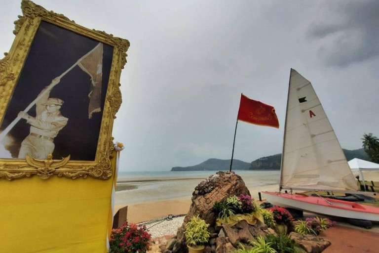 ในโอกาสครบรอบ 56 ปี ที่ พระบาทสมเด็จพระบรมชนกาธิเบศร มหาภูมิพลอดุลยเดชมหาราช บรมนาถบพิตร ทรงเรือใบประเภทโอเค ที่ทรงต่อขึ้นเองพระราชทานชื่อเรือว่า “เวคา” เสด็จข้ามอ่าวไทย เมื่อวันที่ 19 เมษายน 2509 ระยะทางประมาณ 60 ไมล์ทะเลจากพระราชวังไกลกังวล อำเภอหัวหิน จังหวัดประจวบคีรีขันธ์ ไปขึ้นฝั่งที่หาดเตยงาม หน่วยบัญชาการนาวิกโยธินโดยลำพังด้วยพระองค์เอง ทรงใช้เวลาในการแล่นใบถึง 17 ชั่วโมงเต็ม และได้ทรงนำธงราชนาวิกโยธิน ที่ทรงนำข้ามอ่าวไทยมาด้วย ปักเหนือยอดก้อนหินใหญ่ที่ชายหาดของอ่าวนาวิกโยธิน นำมาซึ่งความปลื้มปีติและสำนึกในพระมหากรุณาธิคุณอย่างหาที่สุดมิได้ ซึ่งในการต่อมาทรงพระกรุณาโปรดเกล้าฯ พระราชทานหางเสือเรือเวคา เพื่อเป็นรางวัลนิรันดรในการแข่งขันเรือใบระยะทางไกลของประเทศไทย