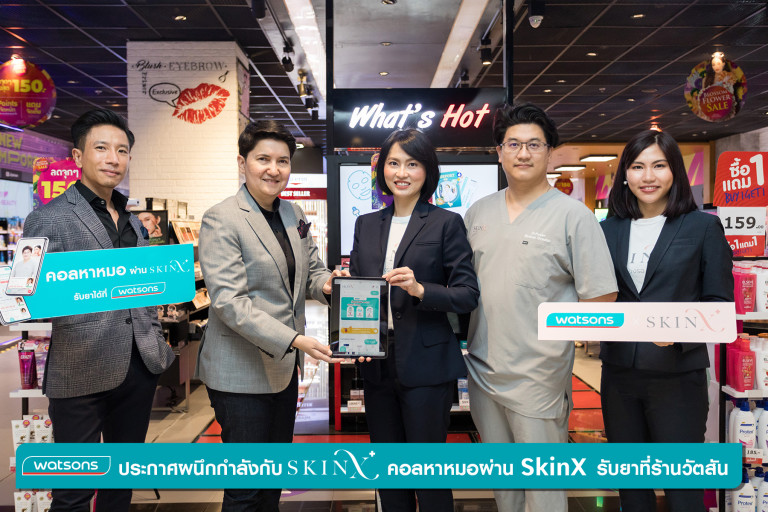 วัตสัน ผู้นำร้านเพื่อสุขภาพและความงาม อันดับหนึ่งของประเทศไทย เดินหน้ายกระดับอุตสาหกรรม Health & Beauty ประกาศผนึกกำลังเป็นพาร์ทเนอร์ ทางธุรกิจอย่างเป็นทางการกับ SkinX Dermatology Platform ดึงนวัตกรรมทาง HealthTech มาตอบโจทย์กลุ่มลูกค้าและเพิ่มโอกาสในการเข้าถึงบริการทางการแพทย์ สำหรับผู้ที่มีความสนใจด้านผิวพรรณโดยเฉพาะ ล่าสุดกับการร่วมมือกับ SkinX แพลตฟอร์มพบแพทย์ผิวหนังออนไลน์แบบครบวงจรเพื่อเพิ่มโอกาสในการเข้าถึงบริการทางการแพทย์พร้อมเติมเต็มประสบการณ์การชอปปิงแบบ O+O (Offline+Online) พร้อมสร้างประสบการณ์ใหม่เกี่ยวกับด้านสุขภาพให้กับลูกค้าได้อย่างไร้รอยต่อ และเพื่ออำนวยความสะดวกให้กับลูกค้าวัตสันและผู้ที่มีความสนใจด้านความงาม โดยสามารถปรึกษาและพูดคุยกับทีมแพทย์ด้านผิวพรรณได้แบบ Real time พร้อมรับยาที่ร้านวัตสัน คุณนวลพรรณ ชัยนาม ประธานเจ้าหน้าที่ฝ่ายปฏิบัติการ วัตสัน ประเทศไทย เผยว่า “วัตสัน รู้สึกยินดีเป็นอย่างยิ่งที่ได้ร่วมเป็นพาร์ทเนอร์ ทางธุรกิจกับ “SkinX” ซึ่งเป็นแพลตฟอร์มพบแพทย์ผิวหนังออนไลน์แบบครบวงจร โดยเราเล็งเห็นถึงเทรนด์ด้าน HealthTech ที่เกิดขึ้นในช่วง 2 ปีที่ผ่านมาพร้อมทั้ง SkinX มีลูกค้ากลุ่มเป้าหมายที่ใกล้เคียงกับวัตสัน ซึ่งให้ความสำคัญในการดูแลตัวเองทั้งเรื่องสุขภาพและความงาม มองหาคำแนะนำจากผู้เชี่ยวชาญตัวจริงและคาดหวังกับผลิตภัณฑ์ที่ดีมีคุณภาพ การร่วมมือกับ SkinX ในครั้งนี้จะทำให้ผู้บริโภคสามารถเข้าถึงประสบการณ์การชอปแบบ O+O (Offline+Online) โดยเฉพาะสินค้าเพื่อสุขภาพและความงาม ซึ่งนับเป็นอีกหนึ่งทางเลือกที่แสนสะดวกโดยลูกค้าสามารถเลือกรับยาได้ที่ร้านวัตสันที่มีเภสัชกร เราเชื่อมั่นว่าการร่วมมือกันในครั้งนี้จะช่วยอำนวยความสะดวกให้ลูกค้าสามารถเข้าถึงบริการให้คำปรึกษาด้านผิวพรรณจากแพทย์ผู้เชี่ยวชาญ และพร้อมรับยาได้ที่วัตสันได้ง่ายขึ้น” พญ.ธิดากานต์ รุจิพัฒนกุล (ประธานเจ้าหน้าที่บริหาร SkinX) กล่าวถึงความร่วมมือในครั้งนี้ว่า “SkinX มีการเติบโตอย่างต่อเนื่องตลอดหนึ่งปีที่เปิดให้บริการมา โดยในปัจจุบัน มียอดดาวน์โหลดเกินกว่า 200,000 ดาวน์โหลด มีแพทย์ผิวหนังในแพลตฟอร์มจากรพ.และคลินิกต่างๆเกินกว่า 200 ท่าน และมียอดผู้ใช้งานในแต่ละวันหลักพัน การร่วมมือกับวัตสันในครั้งนี้จึงถือเป็นการขยายฐานลูกค้า สร้างการรับรู้ถึง SkinX ในวงกว้าง และการที่ผู้ใช้งานมีทางเลือกว่าจะรับยาที่บ้าน หรือไปรับยาที่วัตสันได้ จะช่วยอำนวยความสะดวกสบายและสร้างประสบการณ์ที่ดีให้กับผู้ใช้งานของ SkinX มากขึ้นอย่างแน่นอน” ทั้งนี้ สามารถรับยาที่ร้านว