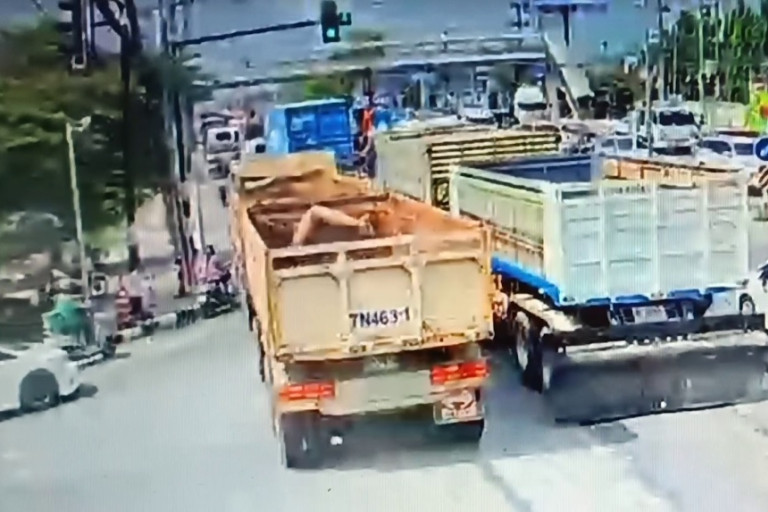 ขณะที่รถจักรยานยนต์ที่ขับออกมาจากทางแยกนั้น แม้จะอยู่ในช่องทางเลี้ยวซ้ายผ่านตลอดเพื่อขับออกจากถนนเทพคุณากร ซึ่งเป็นทางสายรองเข้าสู่ถนนสายหลักนั้น กลับไม่ได้ดูเส้นทางให้ปลอดภัยก่อนที่จะเลี้ยวออกไปตามภาพที่ปรากฏจากกล้องวงจรปิด ที่มีการเผยแพร่ผ่านทางสื่อโซเชียล จึงเป็นเหตุให้รถบรรทุกพ่วงคู่กรณี ยี่ห้อฮีโน่ คันหมายเลขทะเบียนหัวลาก 82-3473 ฉะเชิงเทรา ซึ่งมี นายธนกฤต บุญคำ อายุ 51 ปี ภูมิลำเนาอยู่บ้านเลขที่ 33 ม.5 ต.โคกสี อ.สว่างแดนดิน จ.สกลนคร เป็นคนขับมานั้น เบียดเกี่ยวจนรถจักรยานยนต์ยี่ห้อยามาฮ่าคันหมายเลขทะเบียน ขงล-803 ฉะเชิงเทรา ซึ่งมี น.ส.นรินธร อายุ 20 ปี ภูมิลำเนาอยู่บ้านเลขที่ 108 ม.6 ต.ทับกวาง อ.แก่งคอย จ.สระบุรี ล้มลง และถูกล้อรถทับร่างจนเสียชีวิตในที่เกิดเหตุตามภาพที่ปรากฏ