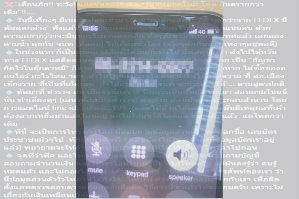 ปัจจุบัน "แก๊งคอลเซนเตอร์" มีพัฒนาการหลอกในรูปแบบต่างๆเรื่อยมา จนบางคนหลงเชื่อทำให้สูญเงินจนเกลี้ยงบัญชี ล่าสุด พ.ต.ท.อังกูร อนุวงศ์ เป็นศัลยแพทย์ที่เชี่ยวชาญด้านการผ่าตัดส่องกล้อง โพสต์ข้อความผ่านเฟซบุ๊ก Angkoon Anuwong ระบุว่า... “เตือนภัย!! ระวัง! แกงค์คอลเซนเตอร์มุขหลอกใหม่ โหด อันตรายกว่าเดิม”!!…. วันนี้เที่ยงๆ มีเบอร์แปลกเข้ามา รับสาย เสียงอัตโนมัติ บอกว่าจาก FEDEX มีพัสดุตกค้าง ฟังแล้วรู้เลย ว่าแกงค์คอลเซนเตอร์โทรมาหลอกแน่นอน ด้วยความอยากรู้ว่าจะมีมุขอะไรมาหลอกอีก ทั้งๆที่เขารู้กันทั้งประเทศแล้ว เลยลอง ตามน้ำ คุยกับ จนท (ปลอม) ไปเกือบชั่วโมง (จริงๆพักกินข้าว เหงาๆอยู่พอดี) ในช่วงแรก ก็เป็นมุขคลาสสิคที่ได้ยินกันทั่วไป มีพัสดุชื่อเรา ส่งไปไต้หวันทาง FEDEX แต่ติดด่านศุลกากร กักไว้ เพราะมีของผิดกฎหมาย เป็น “กัญชา ยัดไว้ในตุ๊กตาหมี” ก็ถามว่าเราเป็นคนส่งไหม ได้ทำเอกสารไรหาย ได้ซื้อของออนไลร์ อะไรไหม ฯลฯ ถ้าไม่ใช่ของเราจริง แนะนำให้ไปแจ้งความ ที่ สภ.เมืองเชียงราย ที่เป็นที่เกิดเหตุ ถ้าไม่สะดวกไป จนท จะประสานให้ … ตามสูตรปกติ ตัดมาที่ ตำรวจ สภ เมือง เชียงราย ร้อยเวรเป็นผู้หญิงโทรมา สอบถามโน่นนี่นั่น ทำเสียงดุๆ (เล่นให้สมเป็นตำรวจ) สุดท้าย สอบปากคำประกอบสำนวน โดยการแอดไลน์ line id: police…191 (แอดไปป่วนได้เลย 555) มันมีเหตุผลที่เค้าต้องลากเหยื่อมาแอดไลน์อยู่ แต่ไม่ใช่มุขวีดีโอคอล แบบเดิมแล้ว แต่โหดกว่าเดิม ทีนี้ จะเป็นการโทรทางไลน์ ก็สอบถามข้อมูลส่วนตัว พอบอกชื่อ เลขบัตรประชาชนมั่วๆไป ทักขึ้นมาทันที ว่าเลขบัตรไม่ใช่ (เค้าคงมีข้อมูลบัตรเราอยู่แล้ว) พยายามจะให้ถ่ายบัตรประชาชนส่งให้ได้ เราก็ประวิงเวลาไปก่อน จุดที่ว่าพีค และโหดสุด อยู่ตรงนี้ครับ เมื่อก่อน เค้าจะสอบถามบัญชี สอบถามจำนวนเงิน และให้เราโอนไปบัญชีม้า ใช่ไหมครับ แต่มันคงรู้ว่า คนรู้หมดแล้ว และไม่ยอมโอนแน่ เค้าเลยใช้มุข “ขอตรวจสอบโทรศัพท์ของเรา ว่ามีข้อมูลส่วนตัวรั่วไหลไปได้ยังไง” โดยให้ ตำรวจไซเบอร์มาคุยกับเรา เพื่อติดตั้งแอพตรวจสอบความปลอดภัยมือถือ วิธีการนี้ คนทั่วไปจะยอมครับ เพราะไม่เกี่ยวกับเงินเหมือนเมื่อก่อน จนท จะให้เราโหลดโปรแกรม ตามลิงค์ข้างล่าง (มีอยู่ใน app store) (ถ้าเป็น android จะส่งของแอนดรอยด์) https://apps.apple.com/.../teamviewer.../id661649585 มันคือ โปรแกรม Team Viewer Support ถ้าคนทั่วไป ที่ไม่ใช่สาย tech จะไม่ค่อยรู้ว่ามันคืออะไร. โปรแกรมพวกนี้ เป็นหนึ่งในสิ่งที่เรียกว่า remote desktop connection กล่าวคือ เรานั่งอยู่ กทม สามารถ คอนโทรลเครื่องคอมหรือมือถือคนที่อยู่เชียงใหม่ได้แทบจะ 100% เค้าออกแบบมาเพื่อให้