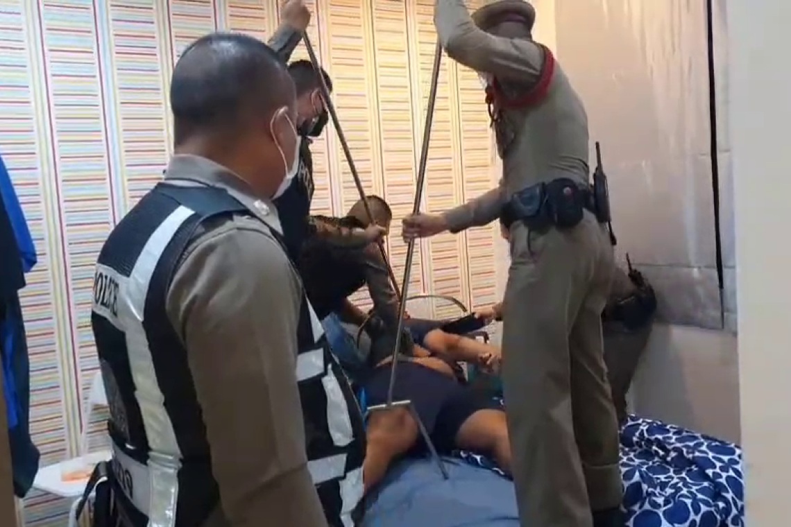 ทางเจ้าของห้องเช่าอนุญาตให้เจ้าหน้าที่ตำรวจพังประตู เจ้าหน้าที่ตำรวจจึงตัดสินใจใช้ค้อน และอุปกรณ์ทุบลูกบิด ก่อนจะบุกเข้าไปควบคุมตัวมิสเตอร์เจสัน บนเตียงนอนอย่างทุลักทุเล ซึ่งเจ้าตัวเองมีรูปร่างสูงใหญ่พยายามดิ้นรนขัดขืน จึงตัดสินใจใส่กุญแจมือไขว้หลัง นำขึ้นรถสายตรวจไปควบคุมตัวที่ สภ.ปากเกร็ด