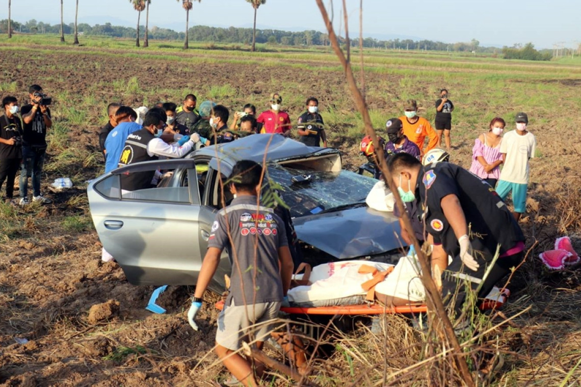 วันที่ 24 เม.ย.65 พ.ต.ท.สหวัฒน์ ดาทอง สารวัตรสอบสวน สภ.ประจันตคาม ได้รับแจ้งว่ามีอุบัติเหตุรถเก๋งเสียหลักพลิกคว่ำ มีผู้ได้รับบาดเจ็บและเสียชีวิตหลายราย หลังจากรับแจ้งเหตุจึงได้เดินทางไปยังที่เกิดเหตุ พร้อมอาสาสมัครมูลนิธิสว่างบำเพ็ญธรรมสถาน และเจ้าหน้าที่โรงพยาบาลประจันตคามเข้าตรวจสอบที่เกิดเหตุ บริเวณจุดเกิดเหตุเป็นถนนเส้นดงไชยมันประจันตคาม พื้นที่หมู่ที่ 10 ตำบลประจันตคาม อำเภอประจันตคาม จังหวัดปราจีนบุรี ลักษณะเส้นทางที่เกิดเหตุนั้นเป็นเส้นทางรถวิ่งสวนกัน 2 เลน บริเวณข้างทางเป็นทุ่งนา มีความลึกประมาณ 3 เมตร เบื้องต้นพบรถเก๋ง มิตซูบิชิ มิราจ สีเทา ทะเบียนนครราชสีมา เสียหลักพลิกคว่ำพังยับ คาดว่าจะชนกับเสาไฟฟ้าที่มีร่องรอยการชนขาดเป็นสองท่อน และมีร่องรอยการขูดกับถนนเป็นระยะทางกว่า 50 เมตร บริเวณที่เกิดเหตุได้พบผู้ได้รับบาดเจ็บ กระเด็นออกมานอกรถ ร้องขอความช่วยเหลือ ทราบชื่อต่อมานายลาภวัต วงษ์สุข อายุ 40 ปี ทางอาสากู้ภัยสว่างบำเพ็ญธรรมสถาน นำส่งโรงพยาบาลประจันตคาม และพบร่างผู้เสียชีวิตในรถจำนวน 2 ศพ ศพแรกเป็นหญิง ชาวลาวทราบชื่อต่อมา นางคำใบ จันสีดา อายุ 37 ปี อยู่ในสภาพนั่งหน้าข้างคนขับเสียชีวิตคาที่คาดว่าจะเกิดจากการกระแทกทำให้คอหัก และทราบว่าอยู่ในการตั้งครรภ์ 3 เดือน ส่วนอีกรายพบบริเวณด้านหลังคนขับสภาพศพกระเด็นออกมา อยู่บริเวณท้ายเก๋ง ทราบชื่อนายสมพร เพชรใส อายุ 37 ปี และอีก 1 ราย เป็นชายสวมเสื้อเชิ้ตสีแดงกางเกงขายาว ชื่อนายอำนวย สวนมะลิ อายุ 56 ปี ร่างกระเด็นออกมานอนเสียชีวิตอยู่บริเวณหน้ารถ หากนับรวมผู้เสียชีวิตในที่เกิดเหตุ และเด็กในครรภ์ รวมทั้งสิ้น 4 ราย จากการสอบถามนายชนะ วงษ์สุข ซึ่งเป็นหัวหน้างานของผู้ได้รับบาดเจ็บและเสียชีวิต ได้กล่าวว่า ผู้เสียชีวิตและผู้บาดเจ็บทั้งหมดเป็นคนงานของตน ซึ่งวันนี้ได้เลิกงานเพียงครึ่งวัน ทางผู้ได้รับบาดเจ็บและผู้เสียชีวิตจึงได้ชวนกันไปหาซื้อกับข้าวในตลาดประจันตคาม เพื่อจะได้มาทำกับข้าวกินกัน ซึ่งที่เกิดเหตุนั้นอยู่ห่างจากบ้านของตนประมาณ 2 กิโลเมตร หลังจากนั้นจึงได้รับแจ้งจากทางโทรศัพท์ว่า คนงานของตนประสบอุบัติเหตุรถคว่ำจึงมีผู้เสียชีวิตดังกล่าว ต่อมานายวิเชียร เบ้าคำภา อายุ 40 ปี ซึ่งเป็นสามีของผู้เสียชีวิตหญิงชาวลาว ได้เปิดเผยข้อมูลกับผู้สื่อข่าวว่า ภรรยาของตนนั้นเป็นคนงานรับเหมา ซึ่งทำงานในเขตพื้นที่ประจันตคาม แล้วตนได้ทราบว่าวันนี้ภรรยาของตนทำงานครึ่งวัน แต่ตนก็เอะใจไม่กลับบ้านสักที จนมีคนโทรไปแจ้งว่า ภรรยาของตนป