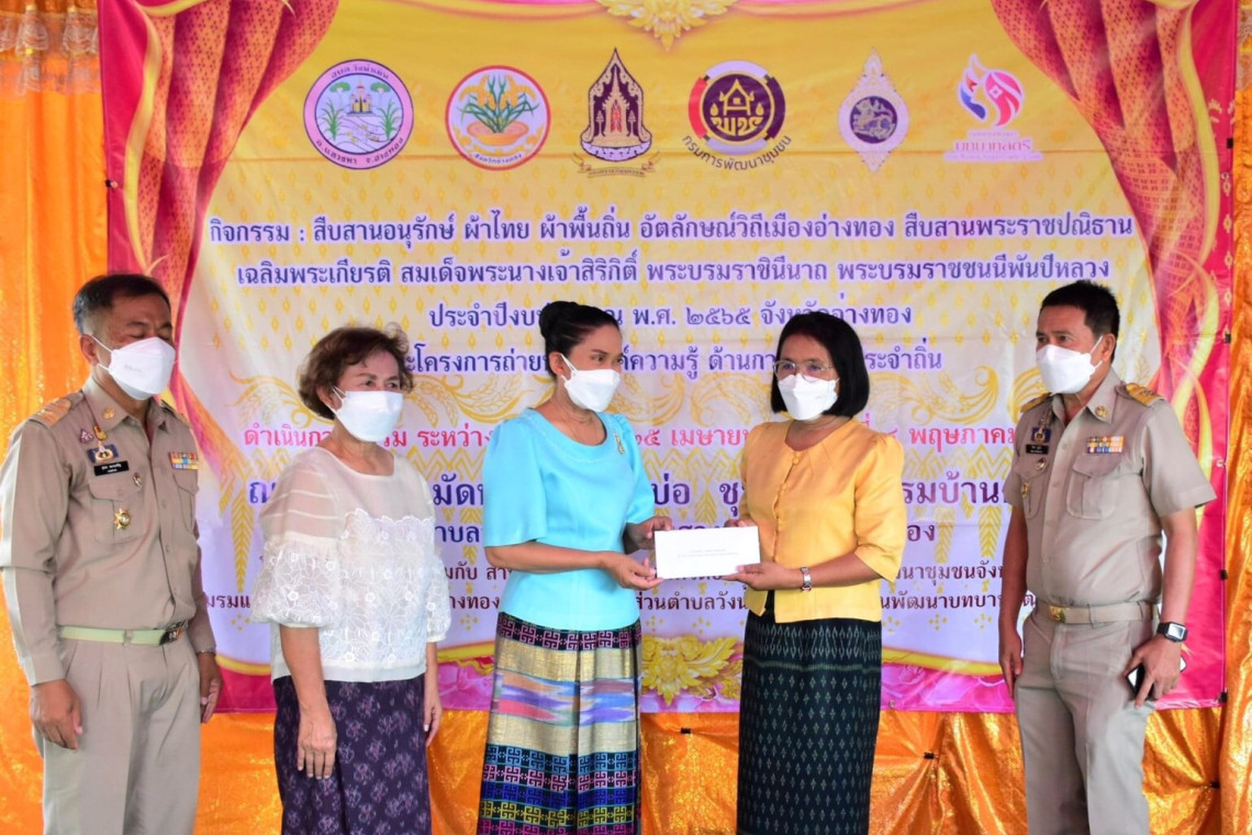 ทั้งนี้การพัฒนาศักยภาพของกระบวนการทอผ้าให้กับกลุ่มอาชีพทอผ้าในพื้นที่จังหวัดอ่างทอง ประกอบด้วย กลุ่มอาชีพทอผ้าผัดหมี่บ้านดอนบ่อ อำเภอแสวงหา, กลุ่มทอผ้าบ้านบางเสด็จ อำเภอป่าโมก, กลุ่มทอผ้าตำบลเทวราช อำเภอไชโย, กลุ่มทอผ้าบ้านลาว อำเภอไชโย และกลุ่มทอผ้ามัดหมี่หน้าวัดโบสถ์ อำเภอสามโก้ ให้เกิดความชำนาญสามารถนำไปพัฒนาต่อยอดในการทอผ้าลายรวงทอง ลายอัตลักษณ์ประจำจังหวัดอ่างทองได้ ทั้งยังเป็นการรณรงค์ ส่งเสริมและอนุรักษ์การทอผ้า รวมถึงเป็นการช่วยเพิ่มแหล่งรายได้ให้กับชุมชนสามารถนำไปพัฒนาต่อยอด ถ่ายทอดองค์ความรู้ดังกล่าว ให้ผู้ที่สนใจที่จะเรียนรู้ภูมิปัญญาการทอผ้ายังคงอยู่กับจังหวัดอ่างทองสืบไป