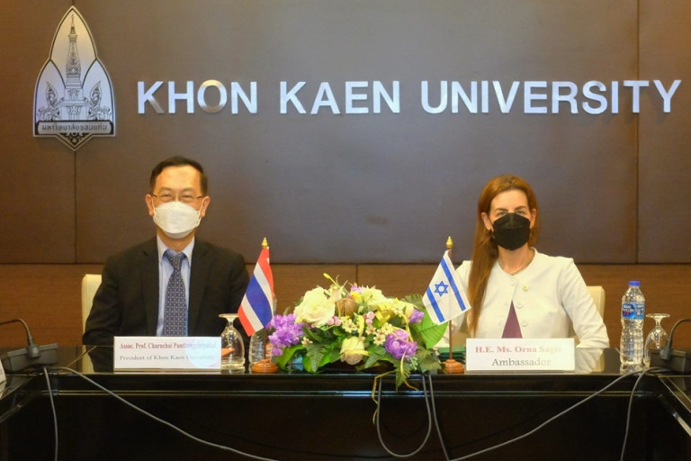 วันที่ 29 เม.ย.65 รศ.นพ.ชาญชัย พานทองวิริยะกุล อธิการบดี มหาวิทยาลัยขอนแก่น กล่าวว่า มหาวิทยาลัยขอนแก่น มีความสัมพันธ์อย่างแน่นแฟ้นกับประเทศอิสราเอล มีความร่วมมือโครงการวิจัยที่พัฒนาร่วมกันเป็นระยะเวลานาน โดยเฉพาะ ความร่วมมือร่วมกับคณะเกษตรศาสตร์ อาทิ Thai–Israel Techno-Demonstration unit for irrigating high-value crops และ the Agricultural Demonstration Farm (แปลงทดลองสาธิตทางการเกษตร) อันนำไปสู่การลงนามความร่วมมือทางวิชาการ MOU ระหว่าง มหาวิทยาลัยขอนแก่น และประเทศอิสราเอล ตั้งแต่ปี พ.ศ.2545 นอกจากนี้ มหาวิทยาลัยขอนแก่น ยังมีกิจกรรมความร่วมมืออื่น ๆ ร่วมกับประเทศอิสราเอล เช่น เมื่อปี พ.ศ. 2558 อดีตเอกอัครราชทูตอิสราเอล ประจำประเทศไทย ได้มีโอกาสเยือน มข. เนื่องในพิธีเปิด “Small Irrigation International Training Course” เพื่อส่งเสริมประสิทธิภาพการจัดการแหล่งน้ำในพื้นที่แห้งแล้ง แถบภาคตะวันออกเฉียงเหนือ ของประเทศไทย และ เมื่อปี พ.ศ. 2563 อดีตเอกอัครราชทูตฯ ได้ให้เกียรติเป็นประธานพิธีเปิด โรงเรือนสำหรับปลูกพืชพร้อมระบบน้ำ (hybrid Greenhouse) อันเป็นโครงการร่วมมือกับ MASHAV, Israel’s Agency for International Development Cooperation–ศูนย์ความร่วมมือเพื่อการพัฒนาระหว่างประเทศของอิสราเอล เพื่อสนับสนุน การพัฒนาและแก้ปัญหา เรื่องการจำกัดการใช้น้ำสะอาดในครัวเรือน และการใช้น้ำในกิจกรรมเกษตร ในพื้นที่ภาคตะวันออกเฉียงเหนือ ประเทศไทย อีกทั้ง เป็นต้นแบบในการเรียนรู้ ถ่ายทอด ศึกษาแก่คณะเกษตรศาสตร์ และภูมิภาคอีสาน ซึ่งการพบปะในครั้งนี้ จึงนับเป็นโอกาสอันดีในการแลกเปลี่ยนความร่วมมือด้านต่างๆ ในอนาคต H.E. Ms. Orna Sagiv เอกอัครราชทูตอิสราเอล ประจำประเทศไทย กล่าวว่า มหาวิทยาลัยขอนแก่น เป็นมหาวิทยาลัยที่น่าอยู่ โดยเฉพาะโครงการ “KKU Smart City & Smart Farm” ที่มีการบริหารจัดการระบบต่างๆ ให้ผู้คน และสิ่งแวดล้อม ใช้ชีวิตอย่างสะดวกสบาย ตอบโจทย์ยุคสมัยในปัจจุบัน นอกจากนี้ ประเทศอิสราเอล ยังมีชื่อเสียงด้าน water management หรือ ระบบการจัดการน้ำ ดังนั้น ทางสถานทูตฯ มีความยินดีอย่างยิ่ง ที่จะมีการจัดสัมมนาออนไลน์ เพื่อแลกเปลี่ยน เรียนรู้ องค์ความรู้ด้านการจัดการน้ำ ให้แก่นักศึกษา นอกจากนี้ ยังได้กล่าวถึง การแลกเปลี่ยนนักศึกษา บุคลากร การแลกเปลี่ยนวิจัย และทุนวิจัย ในอนาคต ในการนี้ เอกอัครราชทูตอิสราเอล ประจำประเทศไทย ยังได้ร่วมให้เกียรติฟังบรรยายพิเศษ ในหัวข้อ “KKU Smart City & Smart Farm” โดยมีหัวข้อบรรยายย่อย 2 เรื่อง ได้แก่ 1. Digital University บรรยายโดย ผศ.ดร.เด่นพงษ์ สุดภักดี รองอธิการบดีฝ่ายดิจิทัล 2. Smart City of SCOPC บรรยายโดย รศ.ดร. ระวี หาญเผชิญ คณะสถาปัตยกรรมศาสตร์ และ อาจารย์ สุรเดช ทวีแสงสกุลไทย วิทยาลัยการปกครองท้องถิ่น หล