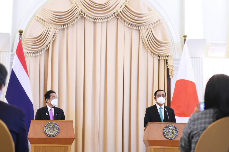 เมื่อเวลา18.35 น. วันที่ 2 พ.ค. 2565 ที่ตึกสันติไมตรีหลังใน ทำเนียบรัฐบาล พล.อ. ประยุทธ์ จันทร์โอชา นายกรัฐมนตรีและรัฐมนตรีว่าการกระทรวงกลาโหม เป็นสักขีพยานในพิธีลงนามความตกลง 3 ฉบับ พร้อมกล่าวถ้อยแถลงในการแถลงข่าวร่วมกับ นายคิชิดะ ฟูมิโอะ (H.E. Mr. KISHIDA Fumio) นายกรัฐมนตรีญี่ปุ่น ในโอกาสเยือนประเทศไทยอย่างเป็นทางการในฐานะแขกของรัฐบาลไทย ภายหลังเสร็จสิ้นการแถลงข่าวร่วม นายธนกร วังบุญคงชนะ โฆษกประจำสำนักนายกรัฐมนตรี กล่าวสรุปสาระสำคัญดังนี้ นายกรัฐมนตรีและนายกรัฐมนตรีญี่ปุ่นร่วมเป็นสักขีพยานในพิธีลงนามความตกลง 3 ฉบับ ได้แก่ 1. หนังสือแลกเปลี่ยนว่าด้วยความร่วมมือทางการเงินระหว่างรัฐบาลไทยกับรัฐบาลญี่ปุ่น 2. ความตกลงว่าด้วยการมอบยุทโธปกรณ์และเทคโนโลยีป้องกันประเทศระหว่างรัฐบาลประเทศญี่ปุ่นกับรัฐบาลแห่งราชอาณาจักรไทย 3. หนังสือแลกเปลี่ยนว่าด้วยความช่วยเหลือแบบให้เปล่าของรัฐบาลญี่ปุ่นภายใต้โครงการสนับสนุนเร่งด่วนสำหรับการรับมือกับสถานการณ์โควิด-19 ในส่วนของถ้อนแถลงนายกรัฐมนตรีกล่าวยินดีที่ได้ต้อนรับนายกรัฐมนตรีญี่ปุ่นในโอกาสเดินทางเยือนประเทศไทยอย่างเป็นทางการ ซึ่งมีความหมายอย่างยิ่งสำหรับความสัมพันธ์ระหว่างสองประเทศ เนื่องจากปีนี้เป็นการครบรอบ 135 ปีการสถาปนาความสัมพันธ์ทางการทูตไทย-ญี่ปุ่น และเป็นช่วงที่ไทยดำรงตำแหน่งประเทศผู้ประสานงานความสัมพันธ์อาเซียน-ญี่ปุ่น ซึ่งจะครบรอบ 50 ปีแห่งมิตรภาพและความร่วมมือระหว่างอาเซียนกับญี่ปุ่นในปีหน้า พร้อมทั้งเป็นปีที่ไทยเป็นเจ้าภาพการประชุมเอเปค ทั้งนี้ จากการหารือร่วมกันระหว่างนายกรัฐมนตรีกับนายกรัฐมนตรีญี่ปุ่น ทั้งสองฝ่ายได้หารือประเด็นสำคัญร่วมกัน 6 ประเด็น ดังนี้ 1. การพัฒนาความเป็นหุ้นส่วนทางยุทธศาสตร์ระหว่างไทยกับญี่ปุ่น นโอกาสครบรอบ 135 ปีการสถาปนาความสัมพันธ์ทางการทูตและครบรอบ 10 ปี หุ้นส่วนทางยุทธศาสตร์ระหว่างไทย-ญี่ปุ่นในปีนี้ ทั้งสองฝ่ายจะยกระดับความสัมพันธ์ความสัมพันธ์จาก “หุ้นส่วนทางยุทธศาสตร์” เป็น “หุ้นส่วนทางยุทธศาสตร์อย่างรอบด้าน” ต่อไป 2. การเสริมสร้างความร่วมมือด้านเศรษฐกิจสู่อนาคต ทั้งสองฝ่ายเห็นพ้องที่จะเสริมสร้างความร่วมมือด้านเศรษฐกิจระหว่างไทยกับญี่ปุ่นให้แน่นแฟ้นยิ่งขึ้น โดยอยู่ระหว่างการจัดทำร่างแผนยุทธศาสตร์ร่วมด้านเศรษฐกิจในการพัฒนาความเป็นหุ้นส่วนระหว่างไทยกับญี่ปุ่นในระยะ 5 ปี โดยหนึ่งในประเด็นที่ทั้งไทยและญี่ปุ่นให้ความสำคัญ คือการเพิ่มความเชื่อมโยงด้าน supply chain ให้ครอบคลุมสาขาต่าง ๆ มากขึ้นตามแผ