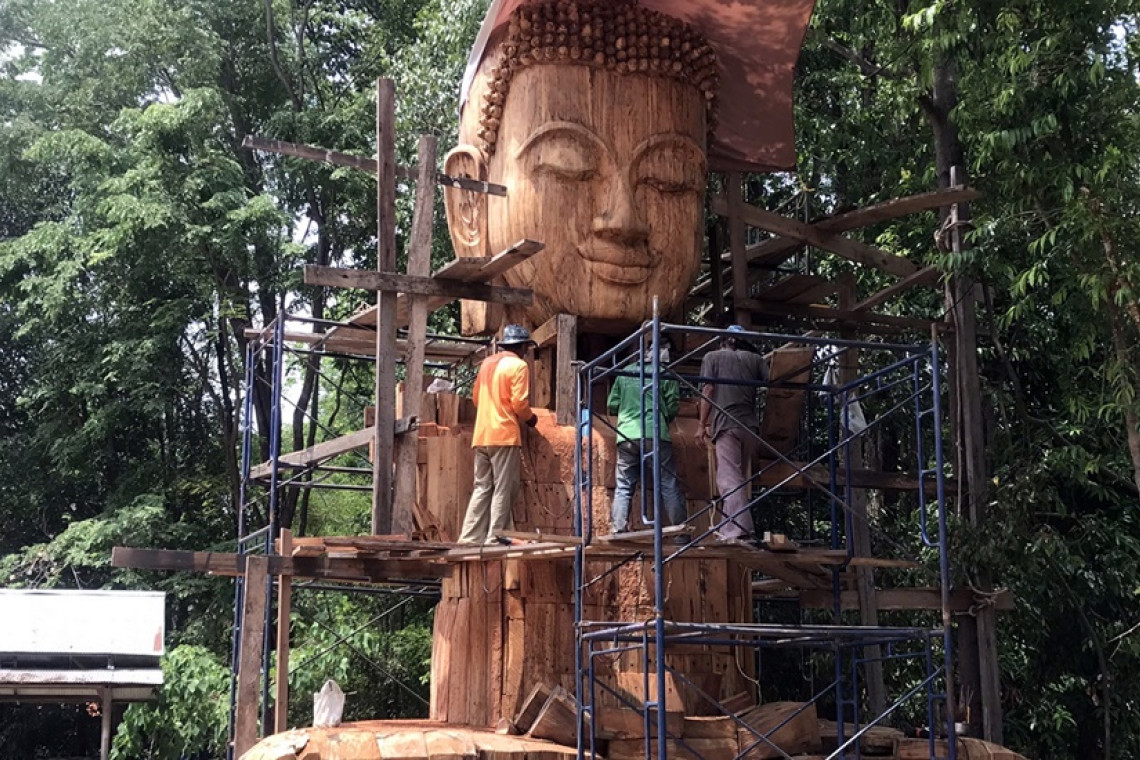 เจ้าอาวาสวัดหนองคูพัฒนา นำไม้ประดู่แกะสลักสร้างพระพุทธรูปปางสมาธิ สูง 7 เมตร หน้าตักกว้าง 5 เมตร สร้างด้วยแรงศรัทธาสร้างพระพุทธรูป ด้วยไม้ขนาดใหญ่มาแล้ว 3 องค์