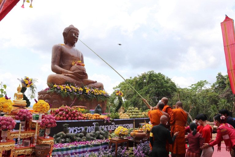 พุทธศาสนิกชนร่วมพิธีอัญเชิญพระพุทธรูปแกะสลักหิน หน้าตัก 108 นิ้ว หนัก 17 ตัน ขึ้นประดิษฐานบนยอดเขาภูสิงห์ จุดชมวิวพระอาทิตย์ลับขอบฟ้า ไหว้พระชมวิวเขื่อนลำปาว วันที่ 9 พ.ค.65 ที่บริเวณหลังเขาภูสิงห์ พระครูสิริพัฒนนิเทศก์ รองเจ้าคณะอำเภอสหัสขันธ์ เป็นประธานฝ่ายสงฆ์ ในพิธีถวายพระพุทธรูปพระพุทธโลกนาถสิงหบรรพต หรือพระพุทธรูปแห่งความอุดมสมบูรณ์ โดยคณะสงฆ์จำนวน 108 รูป ได้ทำพิธีเจริญพุทธมนต์ โดยมีนางสาวแววตา นระทัด นายอำเภอสหัสขันธ์ นายเอกรัตน์ มิสา นายอำเภอฆ้องชัย ร่วมเป็นประธานฝ่ายฆราวาส มีพุทธศาสสนิกชนร่วมพิธีกว่า300 คน ภายใต้มาตรการการป้องกันการแพร่ระบาดโควิด-19 อย่างเคร่งครัด เน้นตรวจคัดกรอง ซักประวัติฉีดวัคซีน และการตรวจ ATK ก่อนจะเข้าร่วมงานพิธี ทั้งนี้ พระพุทธโลกนาถสิงหบรรพต หรือพระพุทธรูปแห่งความอุดมสมบูรณ์ พระครูสิริพัฒนนิเทศก์ เจ้าอาวาสวัดไตรภูมิ รองเจ้าคณะอำเภอสหัสขันธ์ ได้ดำริสร้างขึ้น เป็นพระพุทธรูปปางนั่งสมาธิ มีบาตรวางเพลา(ตัก) เป็นปางรับสัตตุก้อน สัตตุผง สำเร็จด้วยหินทรายทั้งองค์ ขนาดหน้าตัก 108 นิ้ว น้ำหนัก 17 ตัน อุปถัมภ์การสร้าง คุณเอหมัน ประเทศฮ่องกง ดูแลการก่อสร้างโดยคุณสุมิตรา ยังจัตุรัส ประธานทุนนิธิอาหารชาวพุทธนานาชาติ ไทย อินเดีย ฮ่องกง ได้จัดสร้างถวายเป็นพุทธบูชา โดยได้อัญเชิญมาประดิษฐานไว้ที่บริเวณผาตะวันลับฟ้า เพื่อให้ประชาชน นักท่องเที่ยว ที่ขึ้นไปเที่ยวบนภูสิงห์ ได้กราบไหว้บูชา ด้วยเชื่อว่ามีอานิสงส์ ผู้มีโอกาสได้ทำบุญตักบาตรบำเพ็ญทาน จะมากมีด้วยโภคทรัพย์และสิ่งอันเป็นมงคลทวีคูณสมปรารถนา พระครูสิริพัฒนิเทศก์ รองเจ้าคณะอำเภอสหัสขันธ์ กล่าวว่า พระพุทธโลกนาทสิงหบรรพต “พระพุทธรูปแห่งความร่มเย็น อุดมสมบูรณ์” ประดิษฐานบนยอดเขา เพื่อสื่อความหมายถึงพระพุทธเจ้า ผู้เป็นที่พึ่งของสัตว์โลก สถิต ณ ยอดภูสิงห์ ให้พุทธศาสนิกชนได้กราบไหว้พระ และได้ชมวิวที่สวยงามจากยอดเขาภูสิงห์ ที่จะมองเห็นแนวเขตเขื่อนลำปาวมีความสวยงามอย่างยิ่ง โดยนายสุพจน์ วังมี หรือช่างยุทธ เป็นนายช่างแกะสลัก สกุลช่าง อ.วาปีปทุม เมืองมหาสารคาม สำเร็จด้วยหินทรายทั้งองค์ ขนาดหน้าตัก 108 นิ้ว ปางรับสัตตูก้อน สัตตูผง ตามพุทธประวัติ ที่พระพุทธเจ้าทรงรับข้าวสัตตุก้อน สัตตุผง จากตปุสสะและภักลิกะพ่อค้าสองพี่น้องชาวอุกกละชนบท ที่ได้นำมาถวายด้วยความเลื่อมใส เมื่อทรงทำภัตกิจเสร็จแล้ว พ่อค้าทั้งสองประกาศตนเป็นอุบาสก ที่รับเข้าถึงพระพุทธและพระธรรม เป็นที่พึ่งนับถือสูงสุดในชีวิต เป็นเทววาจิกอุบาสก น