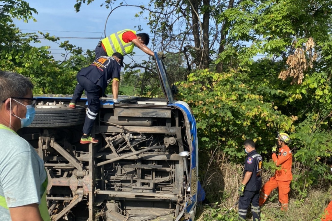 ง่วงอย่าขับ!!! รถโดยสารสาธารณะอันตรายหวิดตายหมู่ ที่จ.อุดรธานีคนขับรถทัวร์หลับใน เสียหลักลงข้างทาง ผู้โดยสารเกือบครึ่งร้อยหวิดตายหมู่ โชคดีบาดเจ็บไม่มีผู้โดยสารเสียชีวิต