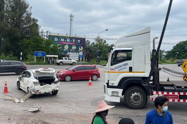 จากการสอบถาม น.ส. เพชรรัตน์ สุราสา อายุ 30 ปี พนักงานเต็นท์รถซึ่งอยู่บริเวณแยกไฟแดงจุดเกิดเหตุพอดี บอกว่า ก่อนเกิดเหตุช่วงประมาณ 10.00 น. วันที่ 17 พ.ค.ที่ผ่านมา ตนเองนั่งทำงานอยู่ที่โต๊ะตามปกติ ได้ยินเสียงเบรกลากล้อมาแต่ไกลก่อนจะมีเสียงชนกันตามมาทันที จึงพากันออกไปดูพร้อมกับพนักงานคนอื่นๆ พบว่ามีรถพ่วงบรรทุกหินหนักมาเต็มคันรถทั้งพ่วงตัวแม่และพ่วงตัวลูก ชนรถยนต์ระเนระนาดหลายคัน เป็นรถยนต์ทั้งหมด ซึ่งมีคนบาดเจ็บ 1คนเป็นคุณตาขับรถมาคนเดียวเป็นรถเก๋งสภาพด้านหลังพังยับเข้าถึงห้องโดยสาร ซึ่งคุณตาโชคดีมากๆที่ได้รับบาดเจ็บไม่ถึงขั้นเสียชีวิต ก่อนที่เจ้าหน้าที่ที่เกี่ยวข้องจะลงมาตรวจสอบและให้การช่วยเหลือนำคนเจ็บส่งโรงพยาบาลและเคลียร์พื้นที่การจราจรให้กลับสู่ปกติ โดยได้ยินคนขับรถพ่วงบอกว่าเบรกไม่อยู่เพราะเบรกแตกทำให้เกิดการชนเกิดขึ้น