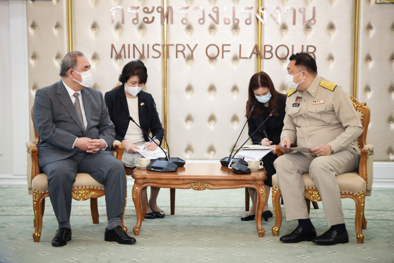เมื่อวันที่ 25 พ.ค.65 นายสุชาติ ชมกลิ่น รมว.แรงงาน ให้การต้อนรับ Mr. Hitoshi Kanamori ประธานองค์กรพัฒนาฝีมือแรงงานระดับนานาชาติ ประเทศญี่ปุ่น (IM Japan) และคณะ เพื่อเยี่ยมคารวะรัฐมนตรีว่าการกระทรวงแรงงานในโอกาสที่ Mr. Hitoshi Kanamori รับตำแหน่งประธาน IM Japan เมื่อเดือนมีนาคม 2563 และหารือข้อราชการการขยายการรับผู้ฝึกปฏิบัติงานเทคนิคชาวไทย รวมทั้งแนวทางการขยายความร่วมมือไปสู่ข้อตกลงใหม่ในเรื่องการรับส่งพนักงานทักษะเฉพาะทาง (Specified Skilled Worker) โดยมี นายสุรชัย ชัยตระกูลทอง ผู้ช่วยรัฐมนตรีประจำกระทรวงแรงงาน นายสุเทพ ชิตยวงษ์ เลขานุการรัฐมนตรีว่าการกระทรวงแรงงาน นายสุทธิ สุโกศล ประจำสำนักเลขาธิการนายกรัฐมนตรี ปฏิบัติหน้าที่ประจำกระทรวงแรงงาน นางเธียรรัตน์ นะวะมะวัฒน์ โฆษกกระทรวงแรงงาน (ฝ่ายการเมือง) นายบุญชอบ สุทธมนัสวงษ์ ปลัดกระทรวงแรงงาน พร้อมด้วยผู้บริหารระดับสูงกระทรวงแรงงาน เข้าร่วมในครั้งนี้ที่ห้องจัตุมงคล ชั้น 6 อาคารกระทรวงแรงงาน