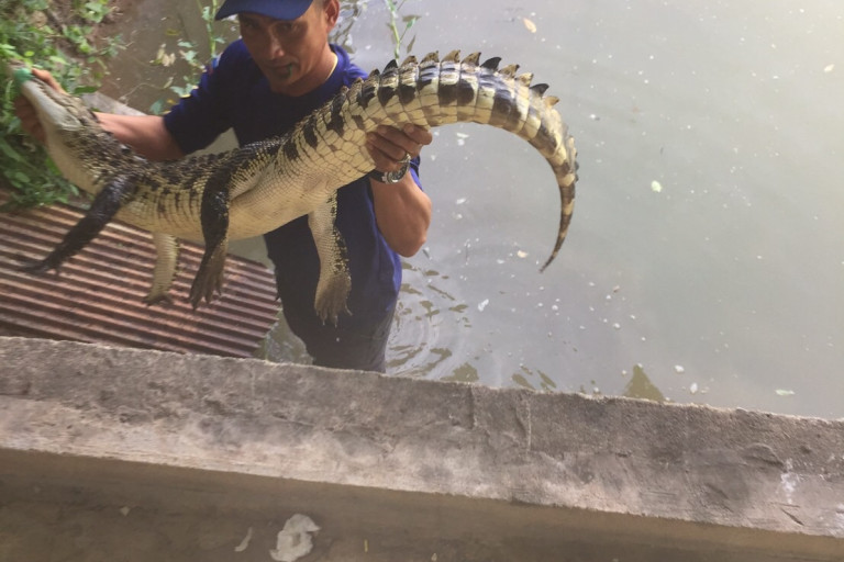 เมื่อวันที่ 24 พฤษภาคม 2565 นายวิสูตร อินทรกำเนิด นายอำเภอพุนพิน จ.สุราษฎร์ธานี ได้รับแจ้งจากนายสุวิชา ใจเปี่ยม ประมงอำเภอพุนพิน ว่า ได้พบจระเข้หลุดจากบ่อไปอยู่ในสระน้ำขนาดใหญ่ของชาวบ้านด้านหลังโรงพยาบาลท่าโรงช้าง ท้องที่หมู่ที่ 3 ต.ท่าโรงช้าง อ.พุนพิน จำนวน 1 ตัว จึงได้ประสานขอสนับสนุนให้เจ้าหน้าที่ชุดไกรทอง ศูนย์ป้องกันและปราบปรามประมงน้ำจืดภาคใต้ จ.สุราษฎร์ธานี เข้าตรวจสอบ