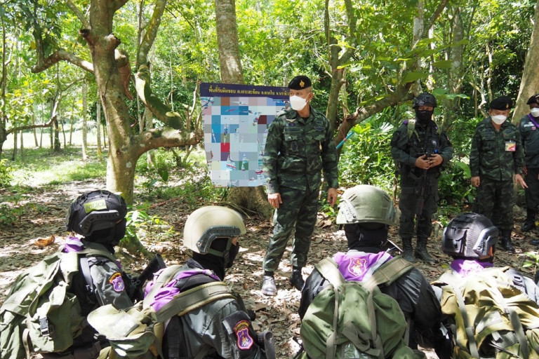 วันที่ 5 มิ.ย.65 ที่ฐานปฎิบัติการ กองร้อยหน่วยเฉพาะกิจตำรวจนราธิวาสที่ 933 ตำบลโฆษิต อำเภอตากใบ จังหวัดนราธิวาส พลตรี เฉลิมพร ขำเขียว ผู้บัญชาการกองพลทหารราบที่ 15/ผู้บังคับหน่วยเฉพาะกิจนราธิวาส และคณะ เดินทางเข้าพื้นที่ ตรวจเยี่ยมติดตามผลการปฏิบัติงาน พร้อมรับฟังการบรรยายสรุปการปฏิบัติงานของกองร้อยหน่วยเฉพาะกิจตำรวจนราธิวาสที่ 933 เพื่อรับทราบปัญหาข้อขัดข้อง และมอบนโยบายแนวทางในการปฏิบัติงาน พร้อมทั้งรับฟังบรรยายสรุปการปฏิบัติงาน 5 งานสำคัญเร่งด่วนตามนโยบาย ผู้อำนวยการรักษาความมั่นคงภายในภาค 4 และงานตามนโยบายผู้บังคับบัญชา พร้อมร่วมหารือ ข้อขัดข้อง และปัญหาต่างๆ ร่วมกันเสนอแนะแลกเปลี่ยนข้อมูลเพื่อความสะดวกในการประสานการทำงานร่วมกันให้สอดคล้องและเป็นไปในทิศทางเดียวกัน จากนั้น พลตรี เฉลิมพร ขำเขียว ผู้บังคับหน่วยเฉพาะกิจนราธิวาส และคณะ ได้เดินทางต่อไปยัง บ้านตะเหลี่ยง อำเภอตากใบ จังหวัดนราธิวาส เพื่อตรวจเยี่ยมการปฏิบัติงานของชุดปฏิบัติการพิทักษ์พื้นที่ (ชป. พิทักษ์พื้นที่) ของกองร้อยหน่วยเฉพาะกิจตำรวจนราธิวาสที่ 933 โดยได้เน้นย้ำการปฏิบัติงานตามนโยบายของ ผู้บังคับบัญชา การแจ้งเตือนข่าวสาร ให้คำแนะนำในการควบคุมพื้นที่ให้เกิดความปลอดภัยสูงสุด พร้อมกันนี้ ยังได้มอบเครื่องอุปโภค-บริโภค เพื่อเป็นขวัญกำลังใจแก่กำลังพล