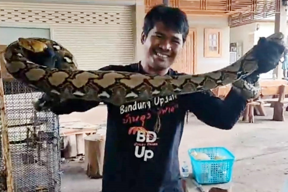 เจ้าของบ้านสุดช้ำใจมีหัวขโมยแอบกินไก่แจ้ หมดไป 4 ตัว เดินไปกรงอยากรู้ตัวคนร้ายแต่สุดท้ายแทบช็อคเมื่อเจองูเหลือมตัวเขื่องยาวเกือบ 3 เมตรแอบเข้ามากินไก่แจ้นอนอิ่มไปไหนไม่ได้ คอหวยไม่พลาดส่องทะเบียนรถหน้างูเหลือม