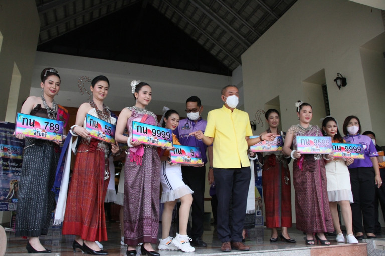 วันที่ 9 มิ.ย. 65 ที่ห้องศรีพาน โรงแรมสุรินทร์มาเจสติก นายสุวพงศ์ กิติภัทย์พิบูลย์ ผู้ว่าราชการจังหวัดสุรินทร์ พร้ออมด้วยนายกฤติกร ชาวอ่างทอง ขนส่งจังหวัดสุรินทร์ และหน่วยงานที่เกี่ยวข้อง ได้ร่วมกันแถลงข่าว เชิญชวนผู้สนใจร่วมประมูลป้ายทะเบียนเขลสวย ซึ่งสำนักงานขนส่งจังหวัดสุรินทร์ ได้จัดการประมูลขึ้น ครั้งนี้เป็นครั้งที่ 8 โดยจัดให้มีการประมูลเลขทะเบียนสวยในหมวดอักษร กน.ก้าวหน้า รุ่งเรือง ร่ำรวย ด้วยป้ายสุรินทร์ถิ่นช้างใหญ่ จำนวน 301 หมายเลข การประมูลในครั้งนี้เป็นการประมูลในรูปแบบใหม่ เป็นการเปิดประมูลด้วยระบบอินเตอร์เน็ต ผ่านเว็ปไซต์ www.tabienrod.com เท่านั้น ซึ่งบรรยากาศภายในงานเป็นไปอย่างคึกคัก มีการนำป้ายเลขทะเบียนสวยที่จะทำการประมูลมาเดินโชว์ โดยเจ้าหน้าที่ของสำนักงานขนส่งจังหวัดสุรินทร์ ทั้งชุดทั่วไปและแต่งชุดผ้าไหมพื้นเมืองของจังหวัดสุรินทร์ที่สวยงาม ออกมาโชว์ เพื่อให้ผู้เข้าร่วมงานได้ชมป้ายเลขทะเบียนที่มีการออกแบบที่สวยงาม ซึ่งแสดงถึง ความก้าวหน้า รุ่งเรือง ร่ำรวย ด้วยป้ายสุรินทร์ ถิ่นช้างใหญ่