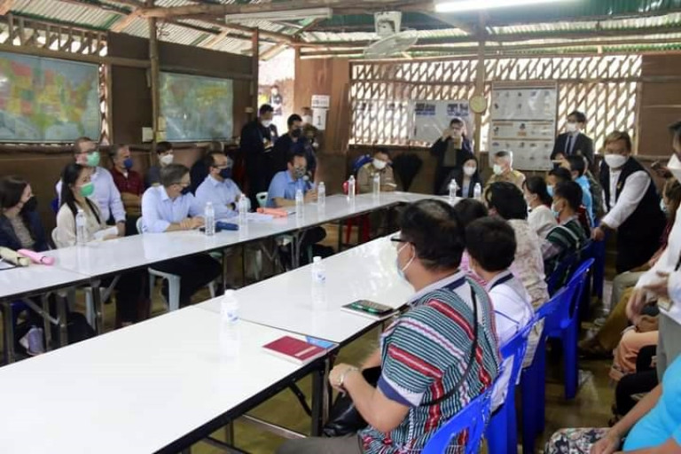 วันที่ 9 มิถุนายน 2565 Mr. Derek Chollet ที่ปรึกษากระทรวงการต่างประเทศสหรัฐอเมริกา และ Mr. Michael Heath อุปทูตรักษาการเอกอัครราชทูตสหรัฐอเมริกา ประจำประเทศไทย และคณะ ได้เดินทางลงพื้นที่ติดตามโครงการขององค์กร NGOs ที่ได้รับการสนับสนุนงบประมาณจากรัฐบาลสหรัฐอเมริกา เพื่อช่วยเหลือผู้หนีภัยการสู้รบจากเมียนมา ในพื้นที่พักพิงชั่วคราวบ้านแม่หละ อ.ท่าสองยาง จ.ตาก ในด้านสุขภาพ ความมั่นคงด้านอาหาร การให้ความช่วยเหลือผู้ด้อยโอกาส ผู้พิการ และการเดินทางไปตั้งถิ่นฐานในประเทศที่สาม ของผู้หนีภัยการสู้รบจากเมียนมา และการให้ความช่วยเหลือในด้านอื่นๆ เพื่อทำให้ผู้หนีภัยการสู้รบจากเมียนมา ได้มีโอกาสในการสร้างอนาตคที่ดี มีอาชีพ และรายได้ที่มั่นคง และมีคุณภาพชีวิตที่ดีขึ้นโดยมีนายสมชัย กิจเจริญรุ่งโรจน์ ผู้ว่าราชการจังหวัดตาก ให้การต้อนรับ พร้อม หน่วยงานราชการที่เกี่ยวข้องร่วมให้การต้อนรับ