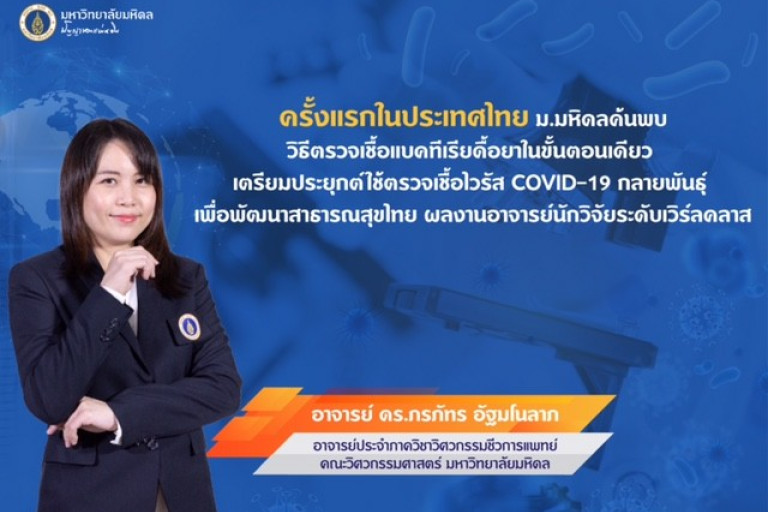 ครั้งแรกในประเทศไทย ม.มหิดลค้นพบวิธีตรวจเชื้อแบคทีเรียดื้อยาในขั้นตอนเดียว เตรียมประยุกต์ใช้ตรวจเชื้อไวรัส COVID-19 กลายพันธุ์ เพื่อพัฒนาสาธารณสุขไทย ผลงานอาจารย์นักวิจัยระดับเวิร์ลคลาส เมื่อนับจำนวนประชากรทั้งโลก กับจำนวนเชื้อแบคทีเรียที่มีอยู่นับไม่ถ้วน ซึ่งมีการเปลี่ยนแปลง และเพิ่มจำนวนอย่างไม่รู้จบ จะพบว่ามีสัดส่วนที่นำมาเปรียบเทียบกันไม่ได้ โดยเชื้อแบคทีเรียมีทั้งชนิดที่เป็นคุณและโทษต่อร่างกายมนุษย์ ซึ่งรอคอยการค้นพบเพื่อการนำมาใช้ประโยชน์และป้องกันการเกิดโรค ทั้งที่เรื้อรัง และอุบัติใหม่ โดยจำเป็นต้องมีการพัฒนาวิธีการศึกษาค้นคว้าให้ทันต่อการเปลี่ยนแปลงของเชื้อแบคทีเรียต่อไปด้วย