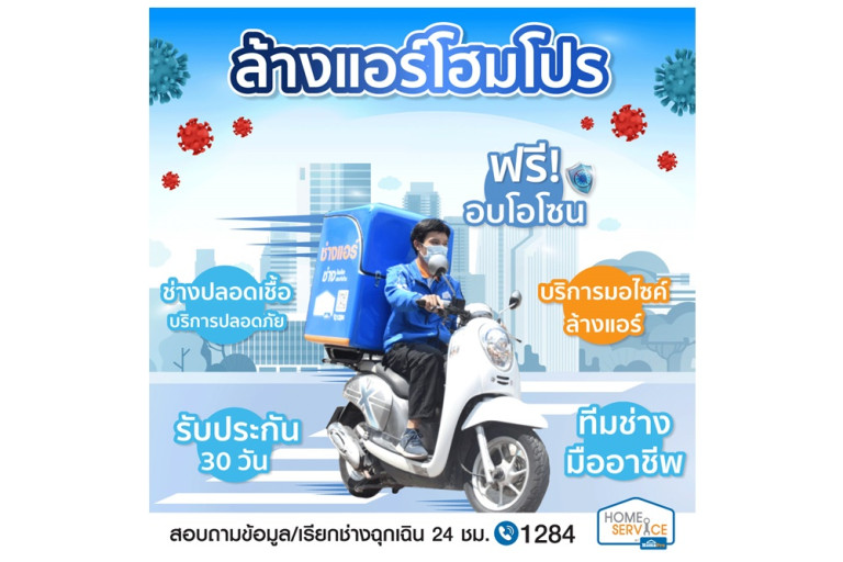 โฮมโปร ผู้นำในธุรกิจค้าปลีกสินค้าเกี่ยวกับบ้าน และที่อยู่อาศัยในประเทศไทย ส่งบริการ ล้างแอร์ พร้อมอบโอโซน ฟรี บุกตลาดล้างแอร์ในยุคปัจจุบัน ด้วยทีมช่างมืออาชีพมากกว่า 1,500 คน ตอบโจทย์ด้านการบริการเรื่องแอร์ สร้างความสะดวกสบาย สะอาด ปลอดภัยไร้กังวล มั่นใจ ทีมช่างผ่านการตรวจ ATK ทุกสัปดาห์ มั่นใจความสะอาดด้วยขั้นตอนการล้างแอร์มาตรฐาน 23 ขั้นตอน จนกว่าน้ำจะใสสะอาดทุกหยด รับประกันคุณภาพงาน 30 วัน หากมีปัญหาน้ำหยด น้ำรั่ว ล้างใหม่พร้อมอบโอโซน ฟรี และ ล่าสุดเปิดบริการ มอเตอร์ไซค์ล้างแอร์ ลงพื้นที่ล้างแอร์ รวดเร็วทันใจ ในสถานที่ที่เข้าถึงยากหรือรถติด ตอบโจทย์ทุกพื้นที่ ให้แอร์ของคุณสะอาดปลอดเชื้อ ด้วยบริการปลอดภัย เลือกช่างมืออาชีพ Home Service