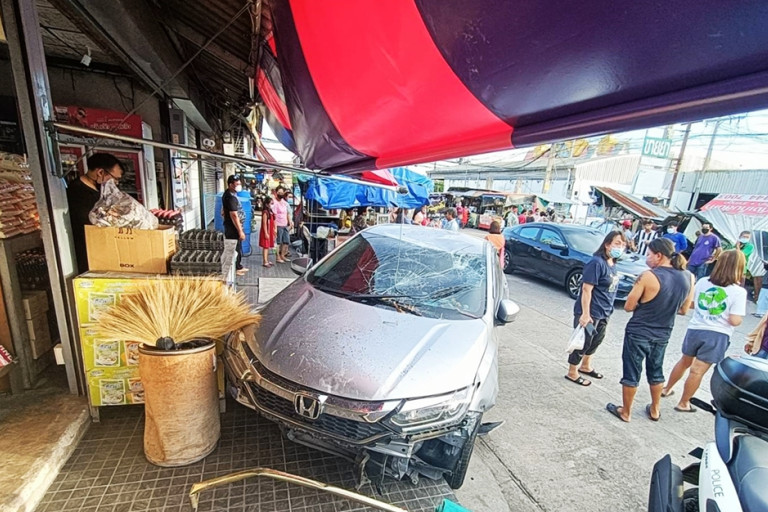 ผู้สื่อข่าวได้เดินทาง ไปยังจุดเกิดเหตุ บริเวณ คลองสามลำลูกกาซอย 49 ต.ลาดสวาย อ.ลำลูกกา จ.ปทุมธานี จากการสอบสวนทางเจ้าหน้าที่ตำรวจทราบว่า นายไพบูลย์ (ขอสงวนนามสกุล) อายุประมาณ 60ปี ขับรถยี่ห้อฮอนด้า ซิสตี้ ทะเบียน กทม. มาทางลำลูกกา ซอย49 จากนั้นได้เลี้ยวเข้าบริเวณลานจอดรถของตลาดและได้เลี้ยวเฉี่ยวชนกับรถยนต์ ยี่ห้อ มิตซูบิชิ สีขาว ทะเบียน กทม. ได้รับความเสียหาย จากนั้นไม่หยุดรถ และขับต่อไปเฉี่ยวชนกับรถนต์ กระบะ ยี่ห้อ โตโยต้า สีเขียว ทะเบียนราชบุรี ได้รับความเสียหาย จากนั้นนายไพบูลย์ ได้ขับรถยนต์พุ่งชนร้านขายไก่ทอด และ ร้านขายผลไม้ ตลอดจนร้านขายน้ำเต้าหู้ และร้านขายผักได้รับความเสียหายเช่นกัน จากนั้น ก็ไปชนกับรถจักรยานยนต์ ยี่ห้อ ฮอนต้ สีแดง ทะเบียน กทม. และรถยนต์คันดังกล่าวได้ขับข้ามไปฝั่งถนน ลำลูกกา 49 ไปชนกับ รถยนต์ 2 แถว ยี่ห้อ ดีแม็ค ทะเบียนปทุมธานี ได้รับความเสียหาย และมีผู้ได้รับบาดเจ็บ ทราบชื่อต่อมานางวรีวัตน์ (ขอสงวนนามสกุล) อายุ 60 ปี น.ส.นรีรัตน์ (ขอสงวนนามสกุล) อายุ 27 ปี บาดเจ็บ และมีเด็กชายอายุ 5 ขวบ หลังจากเกิดเหตุผู้ได้รับบาดเจ็บกำลังเจ้าหน้าที่อาสาสมัครมูลนิธิร่มไทรนำผู้ได้รับบาดเจ็บส่งโรงพยาบาลสายไหม