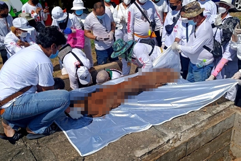 เมื่อเวลา 09.00 น. วันที่ 19 มิ.ย.65 ที่สุสานมูลนิธิหลักเสียงเซี่ยงตึ้งนครราชสีมา (เม้งยิ้งซัวจึง) ริมทางหลวงแผ่นดินหมายเลข 224 ถ.ราชสีมา-โชคชัย ต.หัวทะเล อ.เมือง จ.นครราชสีมา นายประวิทย์ อัศวินชัย ประธานมูลนิธิพุทธธรรม 31 นครราชสีมา พร้อมนายอภิภวัส ตั้งนันทนาการ ประธานมูลนิธิสว่างเมตตาธรรมสถาน จ.นครราชสีมา นายเอกภพ โตมรศักดิ์ นายกเทศมนตรีตำบล (ทต.) หัวทะเล นายศักดิ์ชัย พงษ์พินิจกุล ฐานะหัวหน้าทีมทรงเจ้า และผู้เกี่ยวข้องร่วมกิจกรรมงานบุญมหากุศลกับมูลนิธิสว่างเมตตามอบศพไร้ญาติให้กับมูลนิธิพุทธธรรมฮุก 31 เพื่อเตรียมงานเก็บศพไร้ญาติทำบุญพิธีมอบศพไร้ญาติ มีการประกอบพิธีอัญเชิญองค์ฮ้อเอี้ยฮุ้นฮุดโจ้ว ซึ่งเป็นเทพเจ้าที่คนไทยเชื้อสายจีนและบุคลากรของหน่วยกู้ภัยให้ความเคารพ ศรัทธา โดยสวดมนต์และประกอบพิธีกรรมเพื่ออุทิศส่วนกุศลให้กับเจ้ากรรมนายเวรทั้งหลายพบกลุ่มนักแสวงจากทั่วสารทิศกว่า 500 คน และ เอ๋ เชิญยิ้ม ดาราตลกชื่อดังพร้อมทีมรายการ สัปเหร่อเจอผี และ ยูทูปเปอร์ ช่องต่างๆ ได้มาร่วมบันทึกภาพเหตุการณ์พร้อมช่วยกันเคลื่อนย้ายร่างอาจารย์ใหญ่จำนวน 232 ร่าง จากหีบศพเดิม ซึ่งอยู่ในหีบปูนโดยต้องใช้เครื่องมือทุบเปิดฝาออก เพื่อนำมาคัดกรองอัตลักษณ์จำแนกเพศ อายุและรูปพรรณสัณฐาน จากนั้นได้นำร่างบรรจุในหีบศพใหม่ บรรยากาศค่อนข้างชื่นมื่น ผู้มาร่วมกิจกรรมต่างอิ่มบุญกันถ้วนหน้า โดยมีผู้ใจบุญจัดตั้งโรงทานอาหาร เครื่องดื่ม บริการตลอดการจัดงาน
