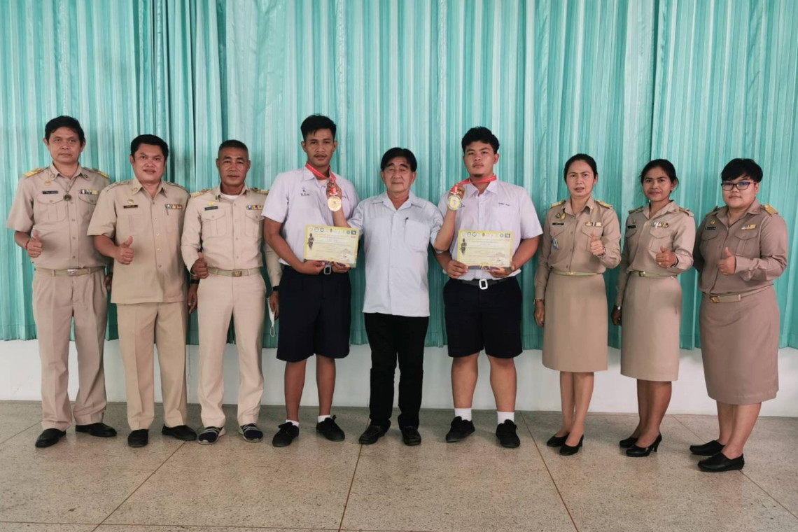 รองนายกเทศมนตรีเมืองบุรีรัมย์ ร่วมแสดงความยินดี กับนักเรียนโรงเรียนเทศบาล 1 บุรีราษฎร์ดรุณวิทยา ที่คว้าเหรียญทอง และเหรียญทองแดง กีฬามวยปล้ำ ในการแข่งขันกีฬามวยปล้ำและกีฬามวยปล้ำชายหาด ชิงชนะเลิศแห่งประเทศไทย ที่ จ.อุตรดิตถ์