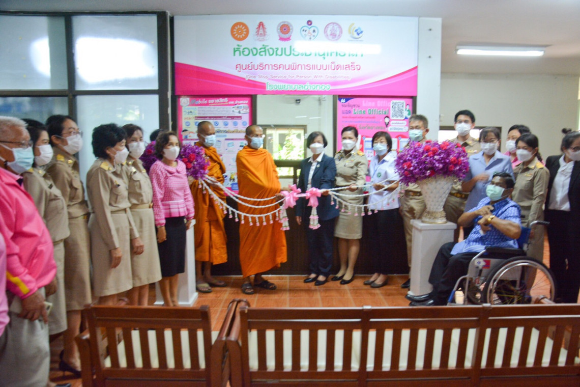 วันจันทร์ที่ 20 มิถุนายน 2565 เวลา 13.00 น. ที่โรงพยาบาลอ่างทอง นางอภิญญา ชมภูมาศ ผู้ตรวจราชการกระทรวงการพัฒนาสังคมและความมั่นคงของมนุษย์ เป็นประธานเปิดศูนย์บริการคนพิการแบบเบ็ดเสร็จ (One stop service) โรงพยาบาลอ่างทองโดยมีนางสาวเอกรัตน์ นาคาคง รองผู้ว่าราชการจังหวัดอ่างทอง พระครูสุทธิกิจจาทร เจ้าอาวาสวัดอ่างทองวรวิหาร รองเจ้าคณะจังหวัดอ่างทอง , พระครูสิริวุฒิกิจ เจ้าคณะอำเภอสามโก้ เจ้าอาวาสวัดไชโยวรวิหาร , พระครูวิบูลย์สังฆกิจ ผู้ช่วยเจ้าอาวาสวัดไชโย วรวิหาร แพทย์หญิงดวงพร อัศวราชันย์ ผู้อำนวยการโรงพยาบาลอ่างทอง พร้อมด้วยผู้บริหารข้าราชการ โรงพยาบาลอ่างทองร่วมในพิธีเปิดศูนย์บริการคนพิการแบบเบ็ดเสร็จ (One stop sevice) โรงพยาบาลอ่างทอง ในวันนี้