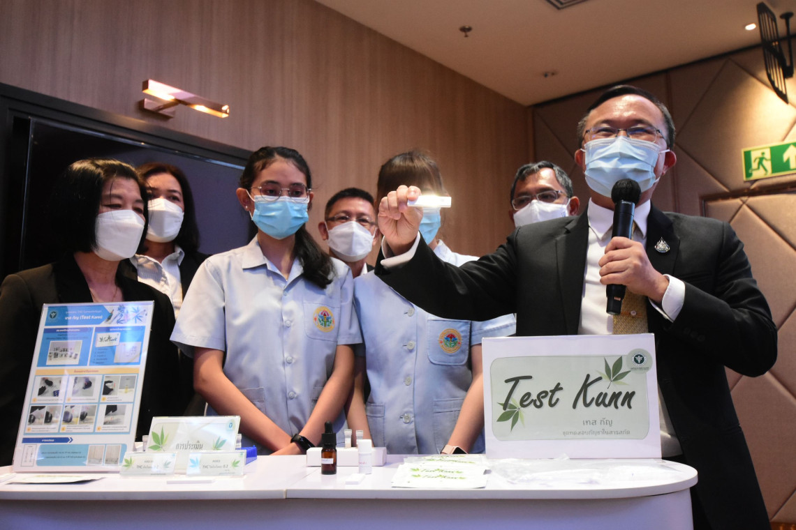 วันที่ 22 มิ.ย.2565 ที่โรงแรมแกรนด์ริชมอนด์ จ.นนทบุรี นพ.ศุภกิจ ศิริลักษณ์ อธิบดีกรมวิทยาศาสตร์การแพทย์ พร้อมด้วย นพ.พิเชฐ บัญญัติ รองอธิบดีกรมวิทยาศาสตร์การแพทย์ และคณะผู้บริหารกรมวิทยาศาสตร์การแพทย์ แถลงข่าวการพัฒนาชุดตรวจกัญชา “Test Kann (เทส กัญ)”