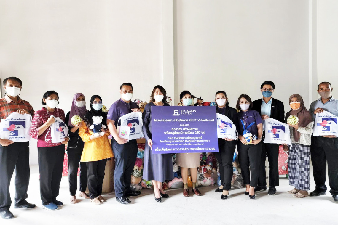กลุ่มธุรกิจการเงินเกียรตินาคินภัทร เดินหน้าภารกิจแบ่งปันเพื่อช่วยเหลือสังคม โดยร่วมมือกับกองทุนเพื่อความเสมอภาคทางการศึกษา (กสศ.) และมูลนิธิกระจกเงา ส่งต่ออุปกรณ์การศึกษาที่จัดทำหรือจัดหาโดยกลุ่มพนักงานจิตอาสาในโครงการ “อาสา สร้างโอกาส” (KKP VolunTeam) จำนวน 250 ชุด ให้แก่นักเรียนโรงเรียนบ้านบึงพระอาจารย์  โรงเรียนสุเหร่าสมอเอก  และโรงเรียนบ้านดอนเกาะกา ต.ดอนเกาะกา อ.บางน้ำเปรี้ยว จ.ฉะเชิงเทรา เพื่อเสริมโอกาสทางการศึกษาของเด็กนักเรียนที่ขาดแคลนให้สมบูรณ์ขึ้น ในการนี้ พัทนัย เหลืองตระกูล ผู้ช่วยกรรมการผู้จัดการใหญ่ สำนักสื่อสารองค์กรและการตลาด กิตติบดี ตรีศร ผู้อำนวยการเขต เครือข่ายสาขา ภูมิภาค 2 เขต 1 เป็นผู้แทนมอบถุงบรรจุอุปกรณ์การศึกษาให้แก่คณะครูและนักเรียนจากทั้งสามโรงเรียน ณ โรงเรียนบ้านบึงพระอาจารย์