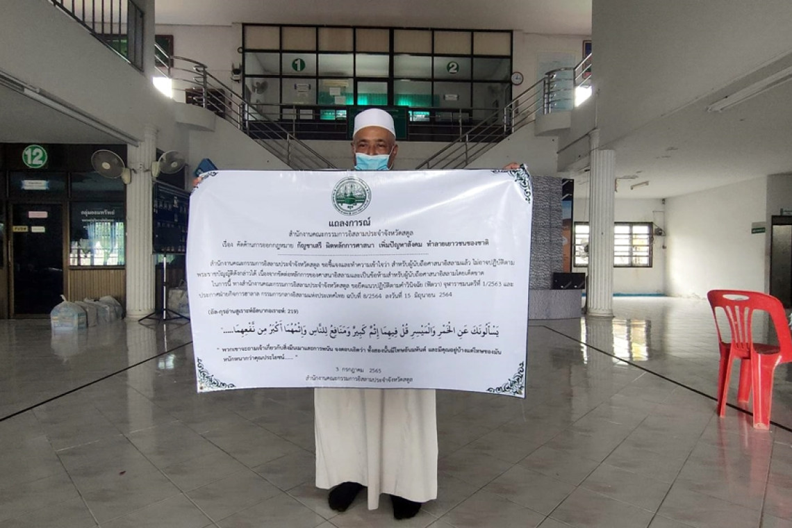 โดยทางสำนักงานคณะกรรมการอิสลามประจำจังหวัดสตูลได้ระบุในแถลงการณ์ข้อความ ตามหลักฐานอัลกุรอาน ที่ระบุว่า "พวกเขาจะถามเจ้าเกี่ยวกับสิ่งมึนเมาและการพนันจงตอบเถิดว่าทั้งสองนั้นมีโทษอันมหันต์และมีคุณอยู่บ้างแต่โทษของมันหนักหนากว่าคุณประโยชน์"