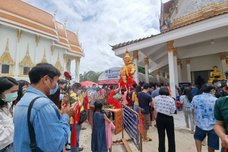 แห่ทำบุญวัดหนองกรับ หลวงพ่อสาคร อดีตเกจิชื่อดังเมืองระยอง วันหยุดนับหมื่นคน กรรมการวัดจับหมายเลขลูกปิงปองได้เลข 659 ให้ผู้เข้าร่วมงานนำไปเสี่ยงโชค