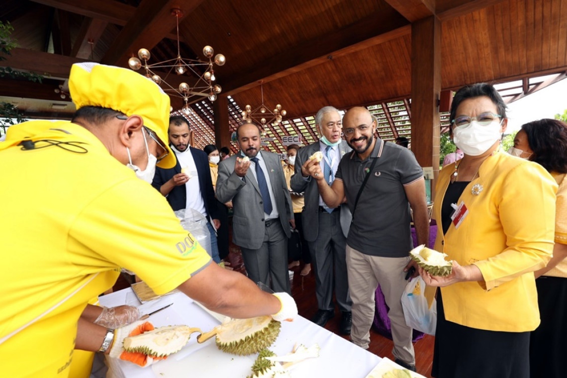 โดยคณะหอการค้ามณฑลริยาด จากซาอุฯ ได้เข้าเยี่ยมชมและศึกษาดูงานภายใน โรงงาน บมจ.เอส เอ็น ซี ฟอร์เมอร์ จ.ระยอง หรือ SNC ซึ่งเป็นต้นแบบโรงงานอุตสาหกรรม 4.0 ภายในพื้นที่อีอีซี นอกจากนี้ จังหวัดระยอง ร่วมกับ บริษัท ประชารัฐรักสามัคคีระยอง (วิสาหกิจเพื่อสังคม) จำกัด และเขตนวัตกรรมระเบียงเศรษฐกิจพิเศษภาคตะวันออก หรือ EECi โดยการจัดแสดงผลไม้ที่ขึ้นชื่อของจังหวัดระยอง เช่น ทุเรียนหมอนทอง สับปะรด 4 สายพันธุ์ ประกอบด้วย พันธุ์ทองระยอง พันธุ์ภูชวา พันธุ์ปัตตาเวีย และพันธุ์ MD2 ลองกอง มังคุด ผลิตภัณฑ์ชุมชนโอทอป ใน Theme Thailand’s Fruit Paradise ซึ่งได้รับความสนใจจากคณะฯ เป็นอย่างมาก