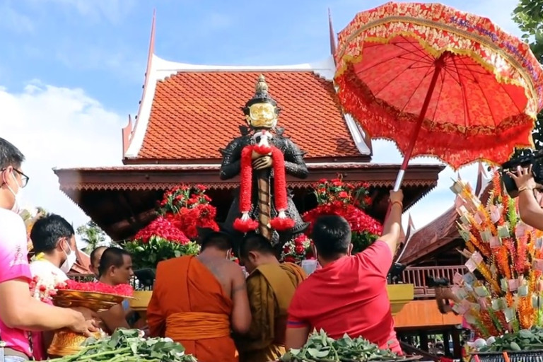 หลังจากที่พระครูภาวนาชยานุสิฐ (พระอาจารย์สุริยันต์ โฆสปัญโญ) เจ้าอาวาสวัดป่าวังน้ำเย็น อ.เมือง จ.มหาสารคาม พร้อมด้วยพระครูสุวรรณปุญญารักษ์ เจ้าอาวาสวัดเดิมบาง เจ้าคณะตำบลเดิมบาง ได้ทำการเบิกเนตรท้าวเวสสุวรรณหน้าทองคำ ได้มีการจุดประทัดถวายจำนวน10,000นัด โดยคณะกรรมการวัดได้นำประทัดขึ้นไปแขวนไว้บนกิ่งต้นโพธิ์ใหญ่อายุ นับ 100 ปี หลังเสร็จพิธีบวงสรวงประชาชนที่มาร่วมในพิธี นำดอกกุหลาบ สีแดง ธูป เทียน สักการะ กราบไหว้ ขอพร ขอโชคลาภ ท้าวเวสสุวรรณ ขณะที่ประชาชน และชาวบ้านที่มาร่วมพิธีต่างพากันแห่ส่องดูเลขหางประทัดเพื่อนำเลขไปเสี่ยงโชคกัน สำหรับเลขหางประทัดท้าวเวสสุวรรณหน้าทองคำ 518 - 92 นอกจาหนี้ยังมีเลขก้านธูปที่ชาวบ้านนำมาจุดและนำไปเสี่ยงโชค เช่น 960 545 087