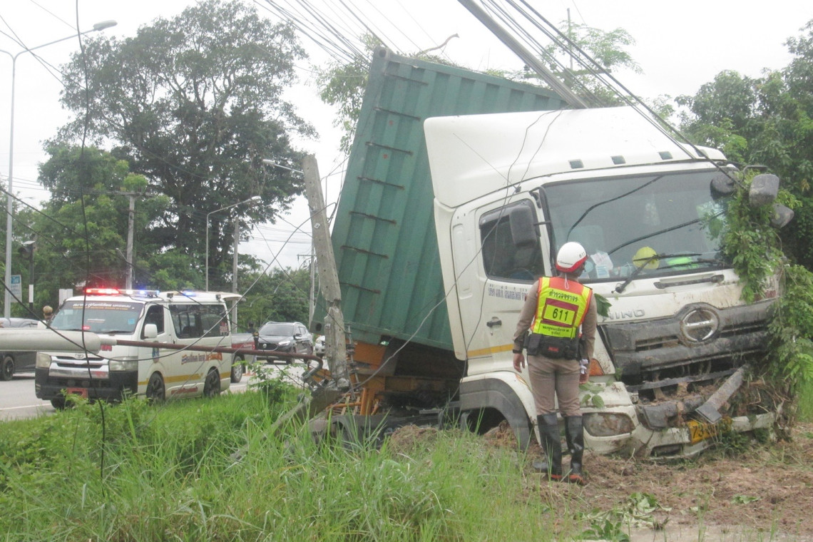 โดยในที่เกิดเหตุ เป็นถนน 4 เลน ใกล้จุดกลับรถฝั่งขาเข้าตัวเมือง พบรถบรรทุกพ่วงคอนเทรลเลอร์ 22 ล้อ ยี่ห้อฮีโน่ สีขาว ทราบชื่อคนขับ ภายหลัง คือ นายกิตติศักดิ์ อายุ 33 ปี ชาว อ.ภูผาม่าน จ.ขอนแก่น เป็นคนขับ ได้รับบาดเจ็บเล็กน้อย ถูกนำตัวส่งไปรักษาที่โรงพยาบาลนครพนม นอกจากนี้ใกล้ที่เกิดเหตุ ยังพบสภาพเสาไฟฟ้าแรงสูง 1 ต้นหักโค่นจากรถบรรทุกพ่วงพุ่งชน รวมถึงพบรถจักรยานยนต์คู่กรณี ถูกชนสภาพพังเสียหายทั้งคัน ยี่ห้อฮอนด้าเวฟ สีดำ ส่วนคนขับเสียชีวิตในที่เกิดเหตุ ทราบชื่อคือ นายธนาวุฒิ วัย 19 ปี ชาว บ.กุดสะกอย ต.โนนตาล อ.ท่าอุเทน จ.นครพนม นักศึกษาชั้นปีที่ 2 สภาพศพนอนหงาย มีบาดแผลฉกรรจ์ที่ศีรษะ เสียชีวิตคาที่ ผู้บาดเจ็บอีกรายคือ นายยศพล อายุ 19 ปี คนซ้อนท้ายรถจักรยานยนต์ ชาว จ.อุบลราชธานี นักศึกษาชั้นปี 2 ได้รับบาดเจ็บสาหัสขาหัก 2 ข้าง ถูกนำตัวไปรักษาที่โรงพยาบาลนครพนม เจ้าหน้าที่จึงตรวจสอบเก็บหลักฐาน ประกอบการดำเนินคดีตามกฎหมาย