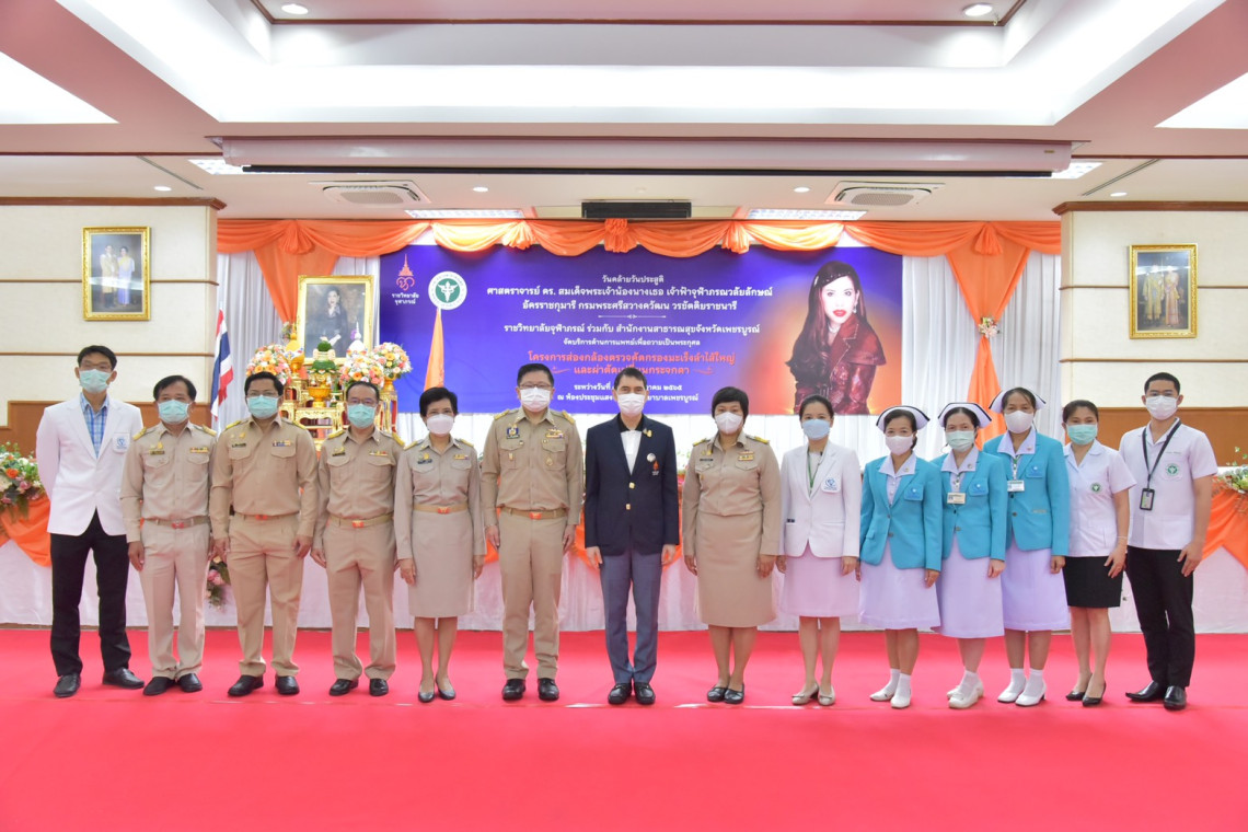 ตามนโยบายตั้งแต่ปี 2561 จากการดําเนินงานที่ผ่านมา พบว่ามีประชาชนที่มีผลตรวจ FIT Test เป็นผลบวก รอรับการตรวจส่องกล้องลําไส้ใหญ่เป็นจํานวนมาก จึงเกิดความร่วมมือโดยศูนย์พัฒนาเครือข่ายราชวิทยาลัยจุฬาภรณ์ ร่วมกับสํานักงานสาธารณสุขจังหวัดเพชรบูรณ์จัดบริการด้านส่องกล้องในระบบทางเดินอาหารให้แก่ประชาชน สำหรับโรงพยาบาลเพชรบูรณ์ได้ดำเนินการส่องกล้องตรวจคัดกรองโรคมะเร็งลําไส้ใหญ่และผ่าตัดเปลี่ยนกระจกตาตามโครงการฯ จำนวน 3 ราย ในวันนี้