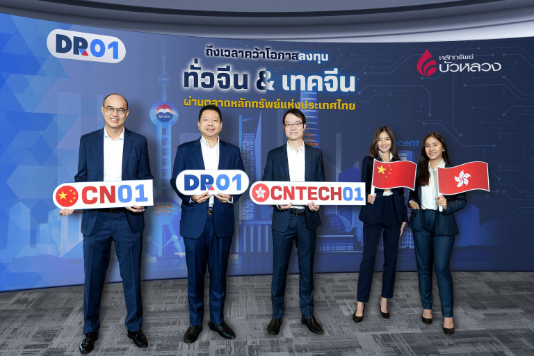 พิเชษฐ สิทธิอำนวย กรรมการผู้อำนวยการ บริษัทหลักทรัพย์ บัวหลวง จำกัด (มหาชน) บรรณรงค์ พิชญากร กรรมการผู้จัดการอาวุโส กิจการค้าหลักทรัพย์ รัฐศรัณย์ ธนไพศาลกิจ ผู้อำนวยการอาวุโส ฝ่ายหลักทรัพย์ต่างประเทศและฟิวเจอร์ส ร่วมกันเปิดตัว 2 DR น้องใหม่ เพื่อเปิดโอกาสให้ ผู้ลงทุนไทยได้ลงทุนหุ้นขนาดใหญ่ของจีน และหุ้นเทคโนโลยีชั้นนำของจีนและฮ่องกง โดยใช้ชื่อย่อในการซื้อขายหลักทรัพย์ “CN01” อ้างอิง ChinaAMC CSI 300 Index ETF (3188.HK) เน้นลงทุนหุ้นบริษัทขนาดใหญ่ของจีน 300 บริษัทที่จดทะเบียนในตลาดหุ้นเซี่ยงไฮ้และเซินเจิ้น และ “CNTECH01” อ้างอิง ChinaAMC Hang Seng TECH ETF (3088.HK) ที่ลงทุนหุ้นบริษัทเทคโนโลยีชั้นนำระดับโลกของจีนและฮ่องกงกว่า 30 บริษัทที่จดทะเบียนในตลาดหุ้นฮ่องกง ซึ่ง DR ทั้ง 2 หลักทรัพย์ ได้รับกระแสการตอบรับเป็นอย่างดีจากผู้ลงทุนหลังเสนอขายครั้งแรกไปเมื่อวันที่ 18-19 ก.ค.65 ที่ผ่านมา ณ หลักทรัพย์บัวหลวง สำนักงานใหญ่ ถนนสีลม