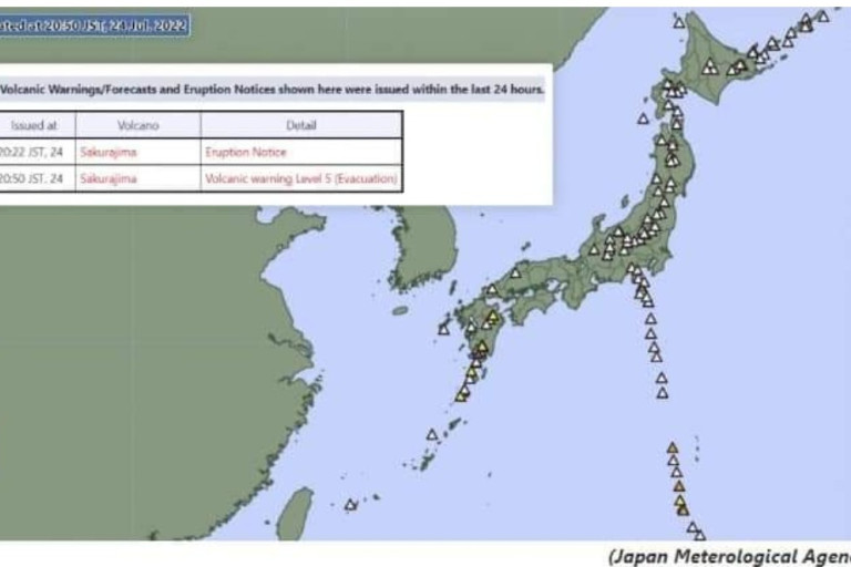 วันนี้(24 ก.ค. 2565)เพจสถานกงสุลใหญ่ ณ เมืองฟูกูโอกะ Royal Thai Consulate-General in Fukuoka แจ้งเตือนภัยภูเขาไฟปะทุ ระบุว่า เวลาประมาณ 20.50 น. ตามเวลาท้องถิ่น กรมอุตุนิยมวิทยาญี่ปุ่นประกาศยกระดับการเตือนภัยภูเขาไฟซากุระจิมะ ใน จ.คาโกชิมะ จากระดับ 3 เป็นระดับ 5 ซึ่งเป็นระดับสูงสุด หลังจากเกิดการปะทุตั้งแต่เวลา 20.05 น. และมีเถ้าภูเขาไฟกระจายจากปล่องภูเขาไฟในรัศมี 2.5 กิโลเมตร โดยขอให้ประชาชนในพื้นที่ใกล้เคียงอพยพ