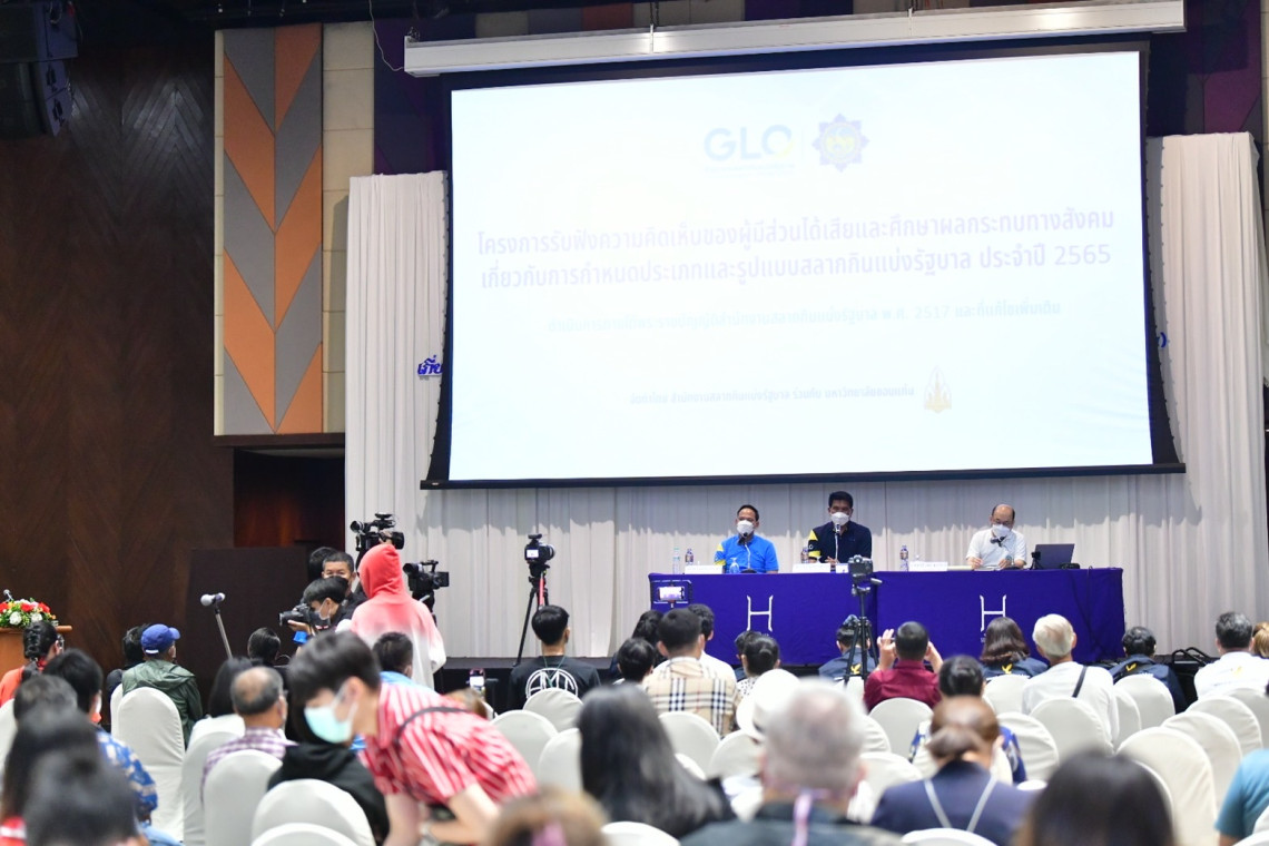 วันนี้ (24 กรกฎาคม 2565) โรงแรมบางแสนเฮริเทจง จ.ชลบุรี นายธนวรรธน์ พลวิชัย กรรมการและโฆษกคณะกรรมการสลากกินแบ่งรัฐบาล พร้อมด้วยพันโท หนุน ศันสนาคม ผู้อำนวยการสำนักงานสลากกินแบ่งรัฐบาล นายทวีป วุฒิบาทุกาจิตต์ รองผู้อำนวยการสำนักงานสลากกินแบ่งรัฐบาล ร่วมประชุมรับฟังความคิดเห็นของผู้มีส่วนได้ส่วนเสียและศึกษาผลกระทบทางสังคม เกี่ยวกับการกำหนดประเภทและรูปแบบสลากกินแบ่งรัฐบาล จังหวัดชลบุรี โดยกิจกรรมแบ่งออกเป็นสองส่วน คือ การรับฟังความคิดเห็นและตอบข้อซักถาม และการสนทนากลุ่มย่อย (focus Group) โดยมีนายนริศ นิรามัยวงศ์ รองผู้ว่าราชการจังหวัดชลบุรี ให้การต้อนรับ และกลุ่มผู้มีส่วนได้ส่วนเสียที่เข้าร่วมกิจกรรม ประกอบด้วย ตัวแทนจำหน่ายสลาก ผู้ซื้อจองล่วงหน้า ตัวแทนส่วนราชการที่เกี่ยวข้อง สื่อมวลชน และประชาชนผู้ซื้อสลาก
